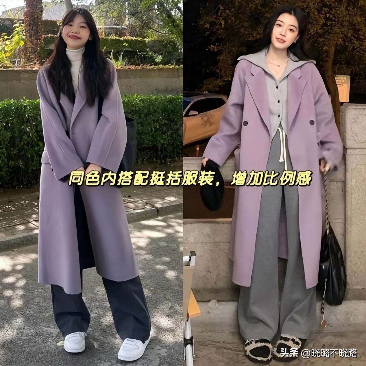 如果上半身骨架比較小,可以選擇一件淺灰色的修身毛衣進行修飾,外面穿上一件寬鬆挺闊的大衣,藉助內窄外松的組合來揚長避短穿出好身材。反之,如果你的肉肉比較多,穿過於緊身的衣服反而暴露缺點,可以嘗試稍微寬鬆一些的服裝進行點綴,藉助紫色與灰色的配合,呈現出豐富的層次。