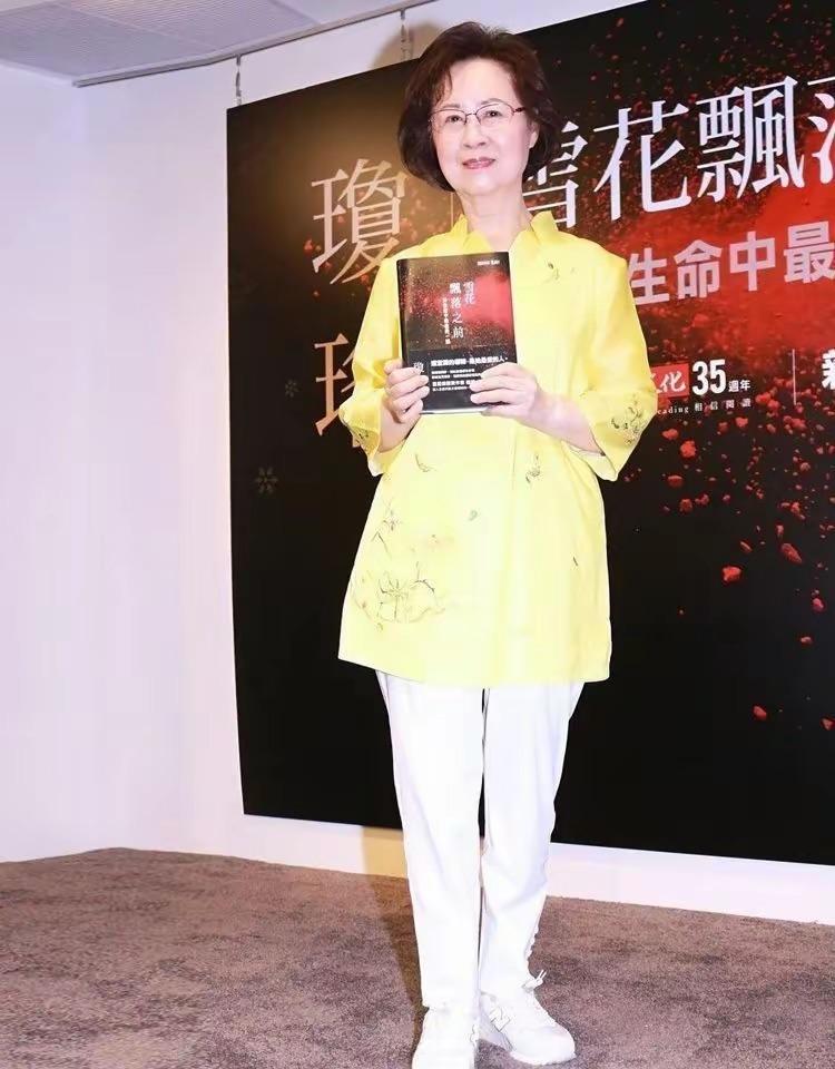 當雪花飄落的新書籤售會,瓊瑤阿姨穿明黃色的國風上衣,搭配了白色的煙管褲,她那麼從容安靜,帶着眼鏡、滿是書卷氣。