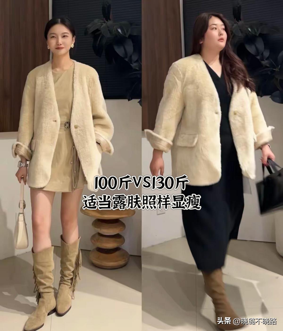 其實當你看完100斤和130斤的對比,就會明白只要穿對衣服,體重根本就不在話下,甚至胖一點的女生,給人的感覺反而更舒服,並且還有一種獨特的豐腴之美。