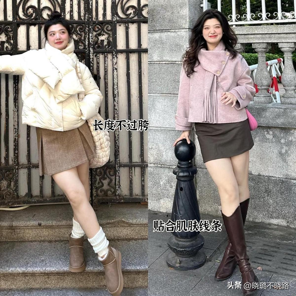 尤其是短裙和靴子的搭配,配短靴可以穿雙堆堆襪,配高筒靴縮小露膚面積,再搭配一件短款外套,分分鐘穿出大長腿的即視感。