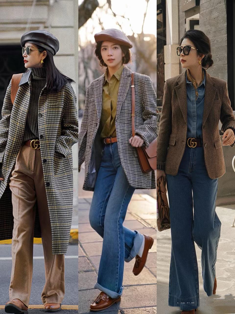 比如板栗色外套,可以搭配復古風的牛仔襯衫、高腰的牛仔褲,保暖大氣又有型。尤其是牛仔襯衫作爲內搭、特別有範。