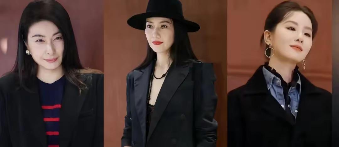 三位美女都穿黑色衣衫,看起來是差不多款式的西服外套,但是搭配上各有玄機,呈現出來的氣質也截然不同。