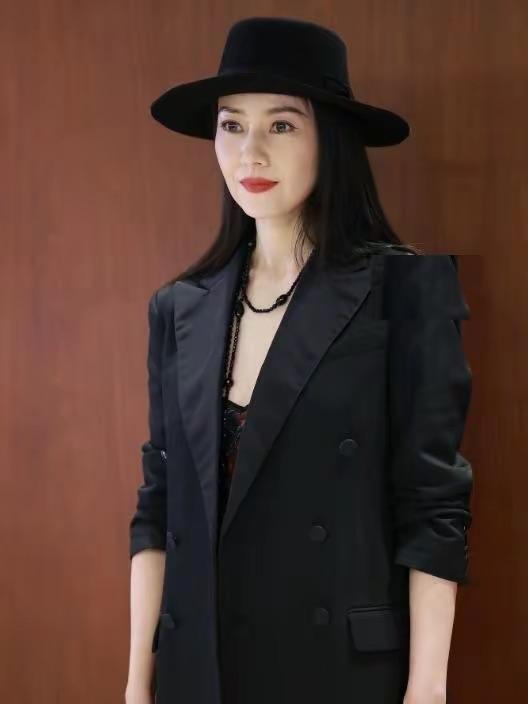要說最時髦、高圓圓一定是當仁不讓。黑色小禮帽、顯的她明媚大氣,必然是人羣中最醒目。