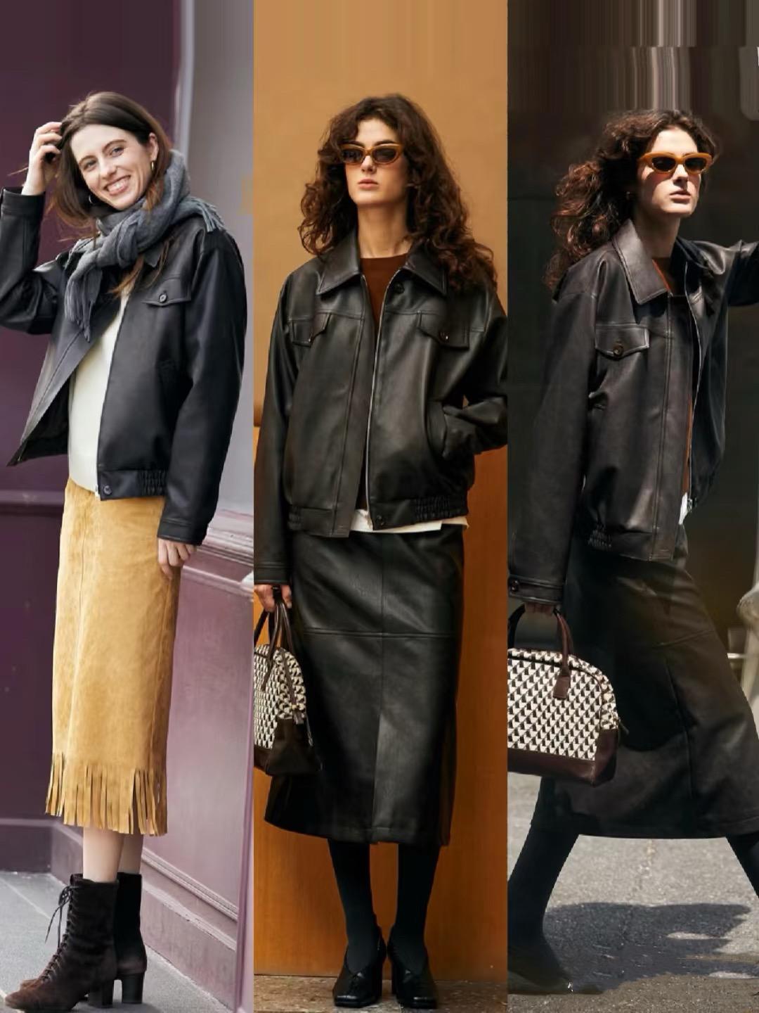 街頭感十足的穿搭,也可以更加高級復古。面料高級的皮衣外套,中規中矩的款式,也能穿出不一樣的氛圍。