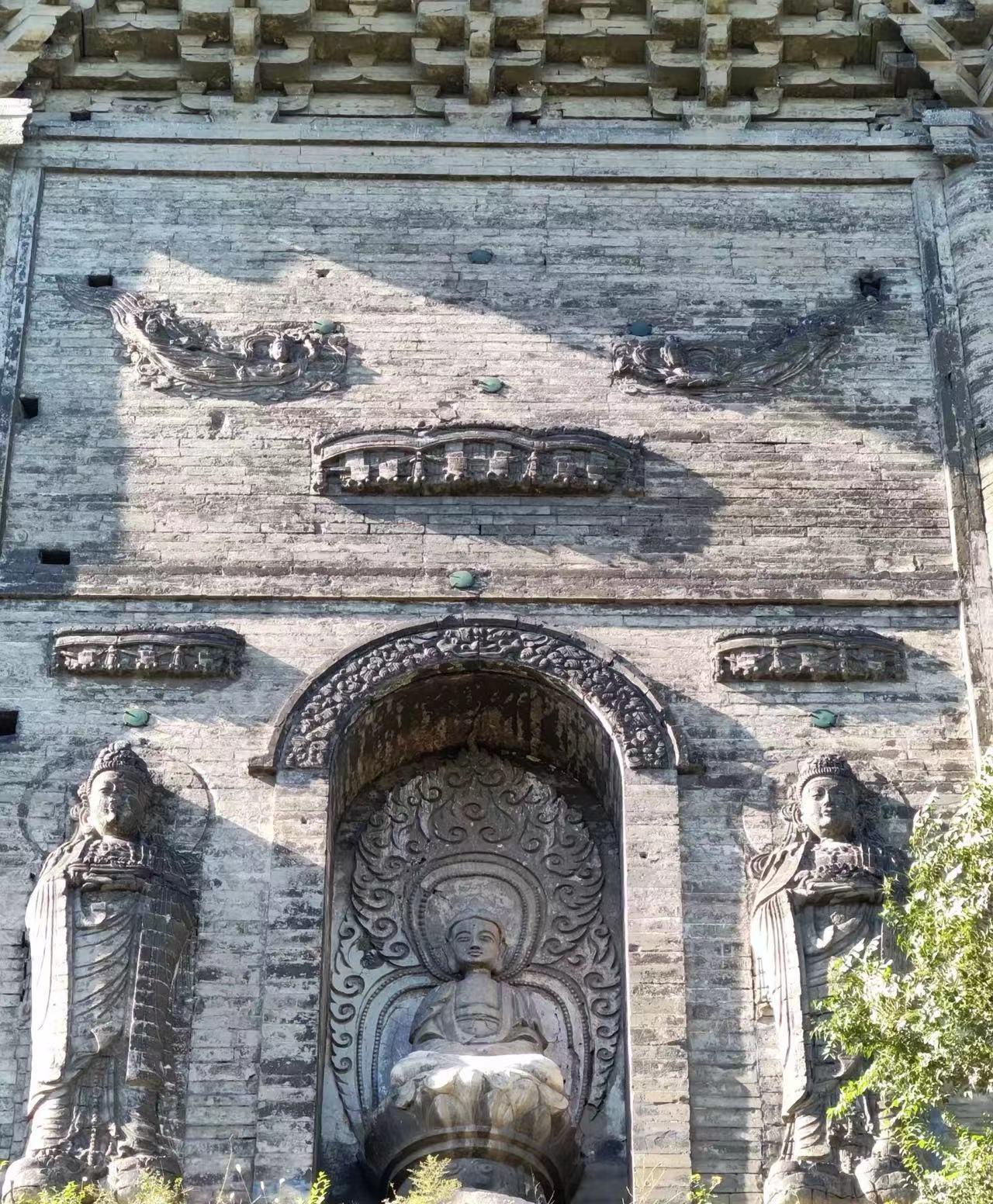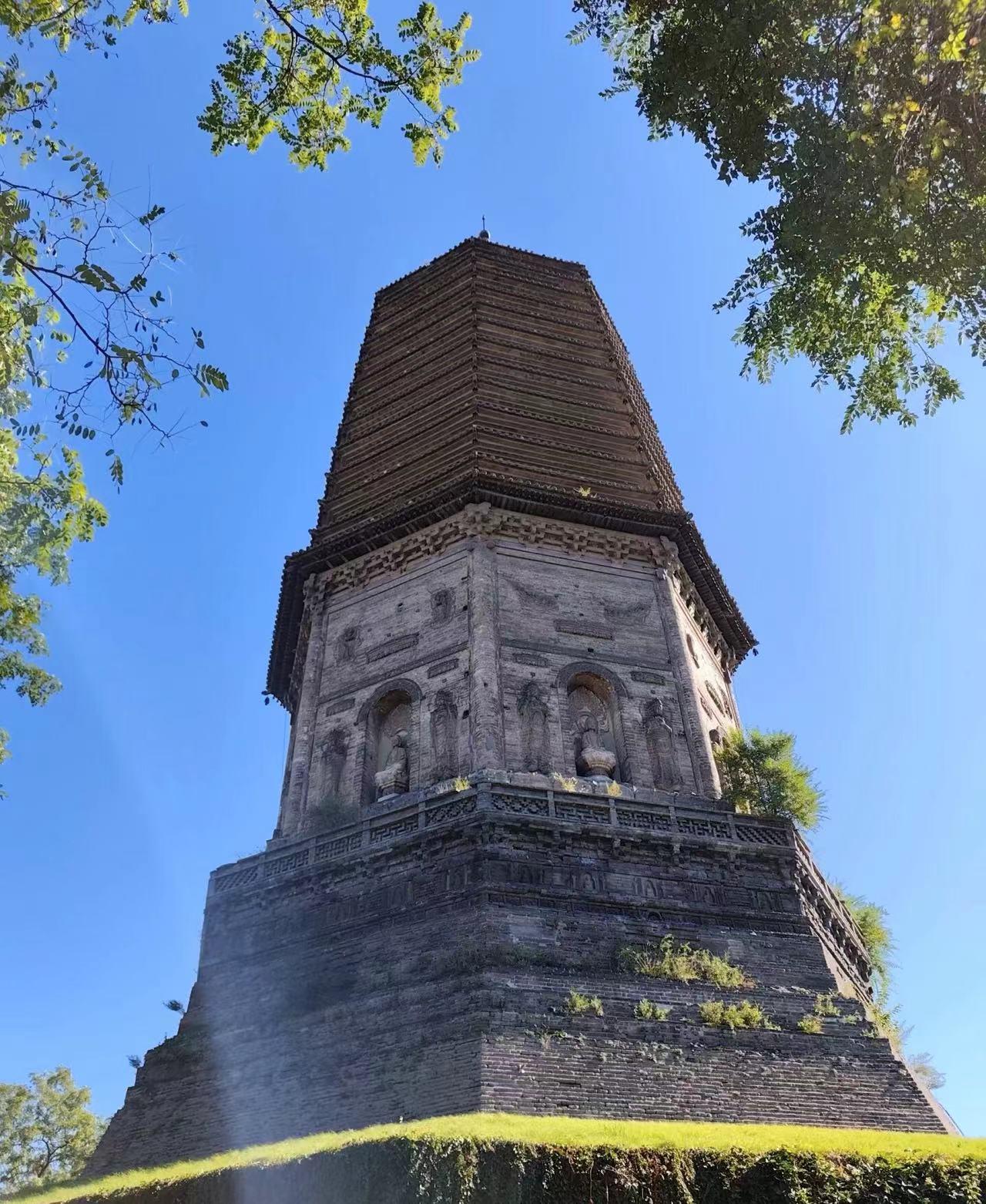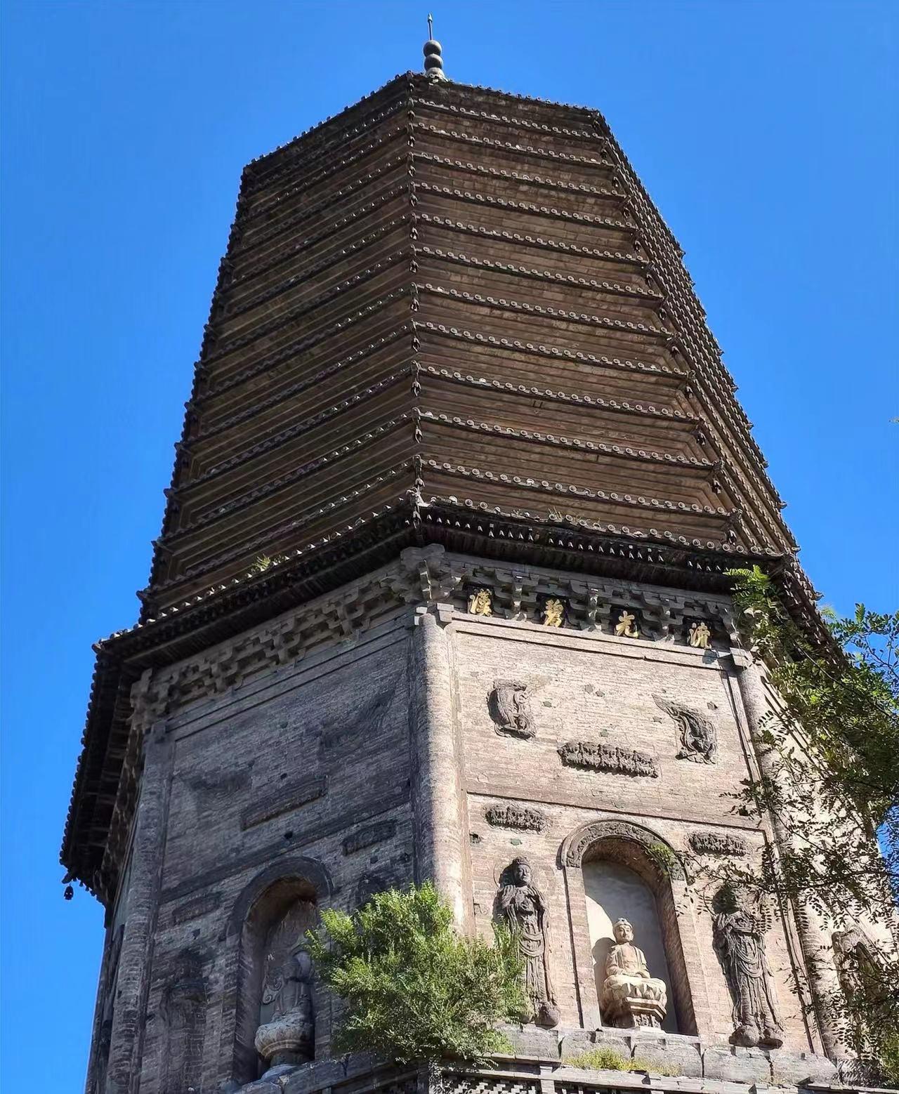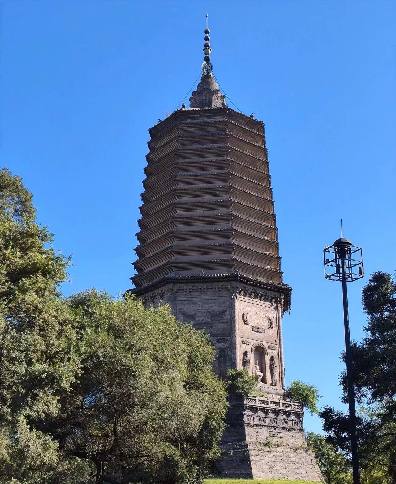 塔身一共有八角十三層,是東北地區最大的磚塔,每一層都有佛龕。塔檐角懸風鈴,隨風作響。塔頂仰蓮承覆體,以火焰、相輪、寶珠裝飾,精美壯觀。