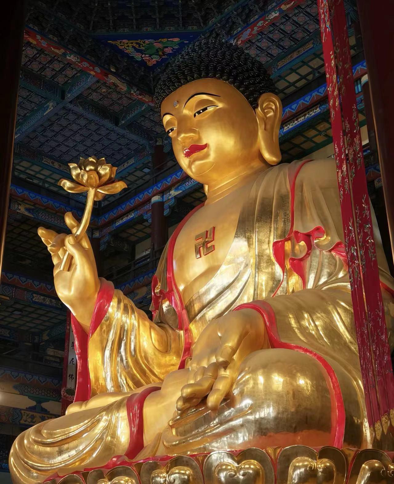 廣佑寺有5個世界之最,如最大的宮燈、最大的殿內木質貼金坐佛、最大的大雄寶殿、最大的青銅香爐、最大的青石牌坊。