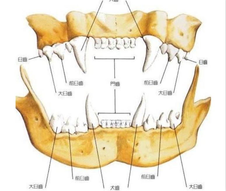 在貓咪的口腔裏面有一排門牙,還有四根尖尖的犬齒,再往裏是小小的臼齒,這些臼齒導致它不能完全吻合在一起,因此不能達到較爲滿意的咀嚼狀態。面對比較大的食物只能直接咬碎吞下去。