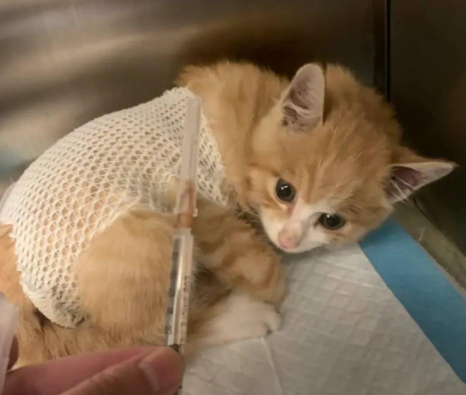 通過放氣後,納爾現出了它真實的模樣,小小的身體才0.8kg,只有3個月大,不敢想象脹氣後的它到底有多難受。