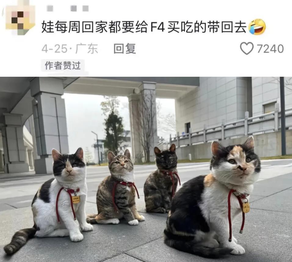 甚至有家長反饋,自家孩子實在太愛貓咪了,每週返校都會帶好多零食回去給F4喫。