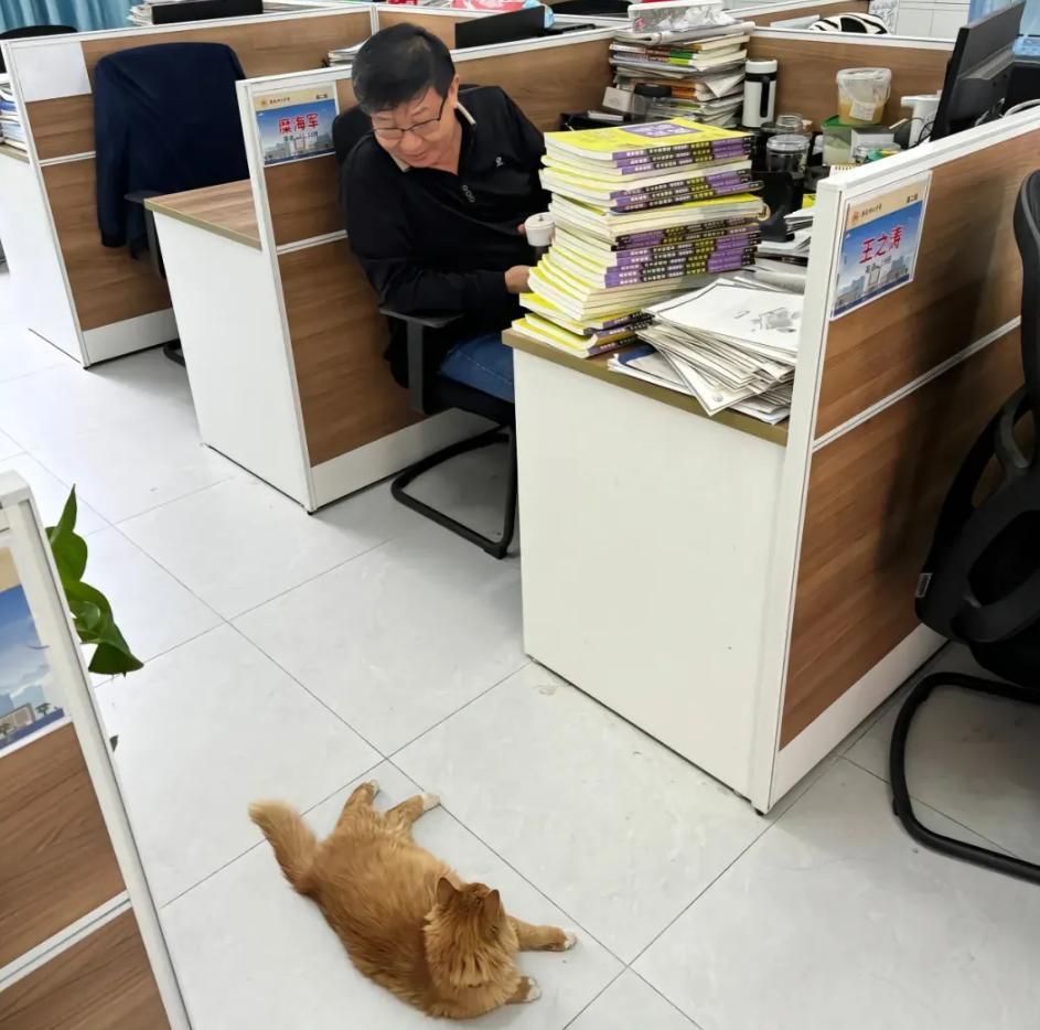 除了孩子們,學校的老師對貓咪也是疼愛有加。當他們在不停地修改孩子們的作業,揮手擦汗的時候,貓咪會伸出一個懶腰,發出呼嚕聲,或者是隨地打個滾,好像在跟老師們說:“您辛苦了!”