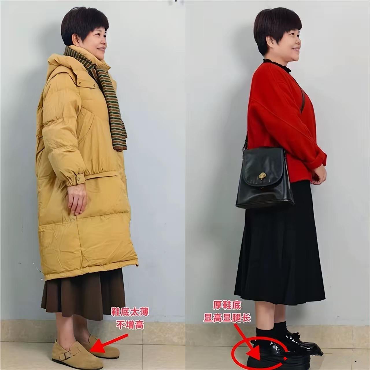 一雙合適的鞋子,對於50+微胖阿姨的氣質呈現也很重要。當你上了年紀、身材有一點微胖的時候,儘量多穿厚底的鞋子。
