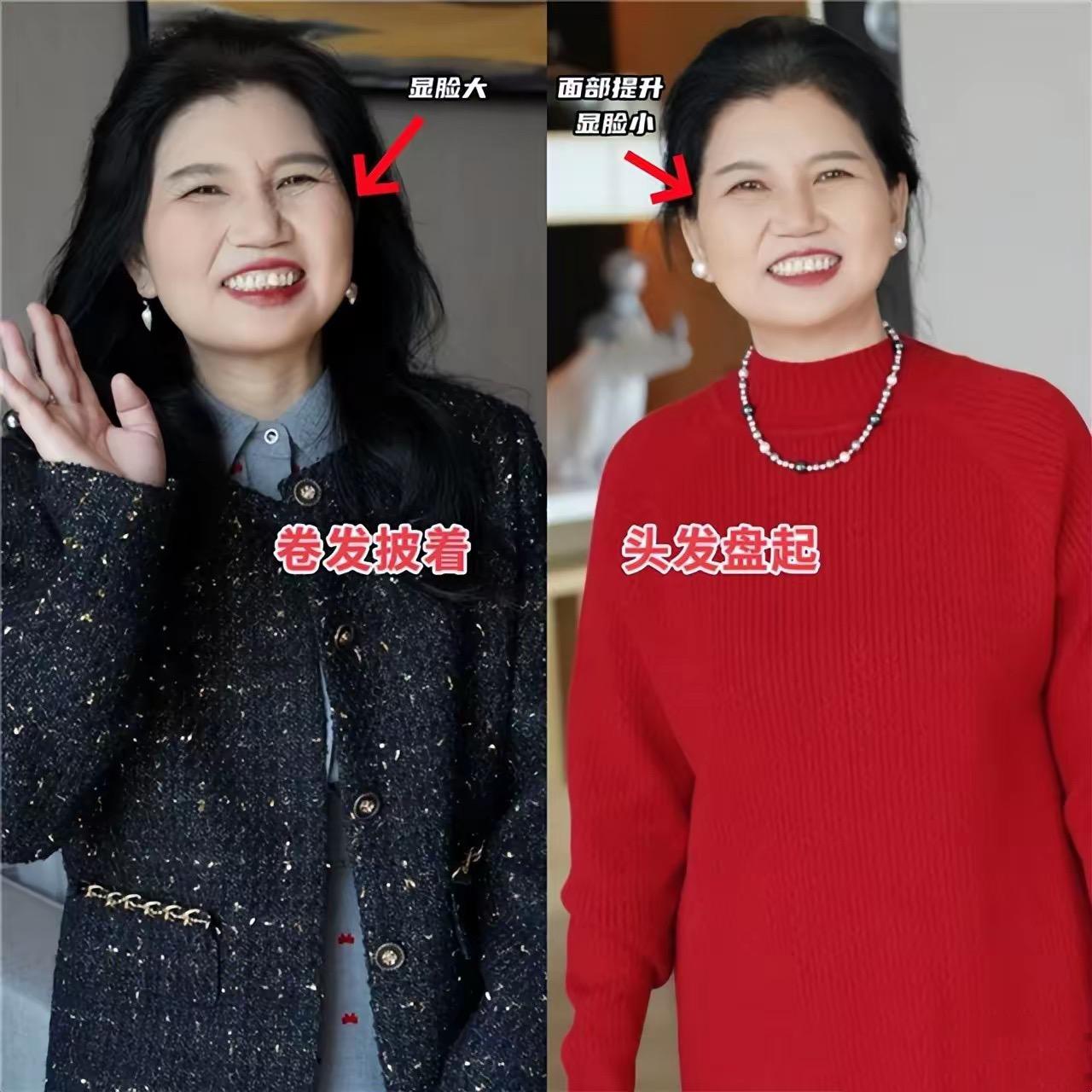 披頭散髮、已經不適合50+阿姨了。不僅顯臉大、還容易顯老氣。相對而言、將頭髮盤起、打造蓬鬆高顱頂,配上珍珠耳環,就格外的顯貴。
