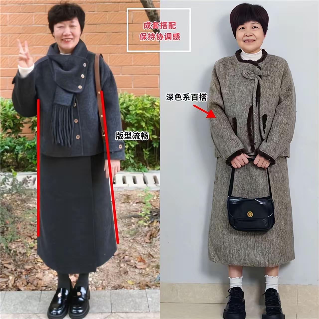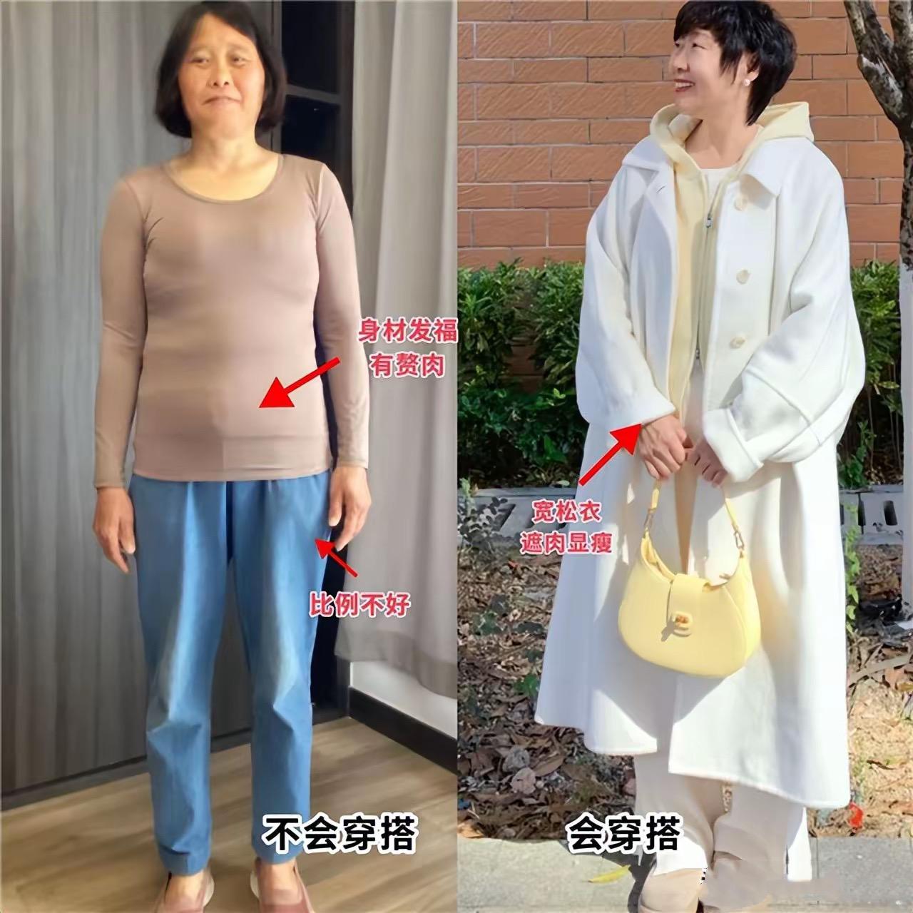 衣着寬鬆,並不是一味的選擇寬鬆衣服,而是有自己的選款技巧。看兩位阿姨同穿寬鬆衣服,不同的款式所表現出來的效果也是不同的。