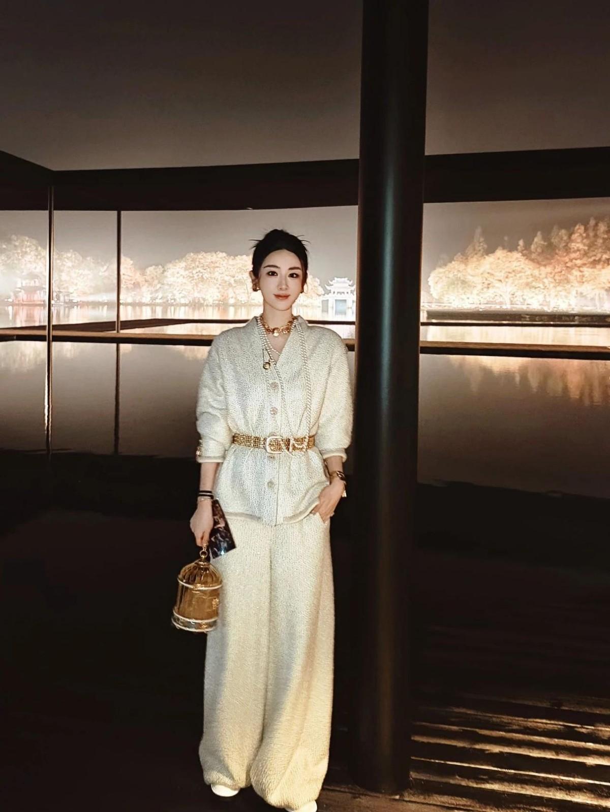通勤時穿梭於繁忙的都市街頭,用一件小香風外套,搭配黑白色西裝褲,輕鬆穿出雲淡風輕的優雅,像是薇婭這樣搭配白色長褲出席正式場合,優雅又有氣質。
