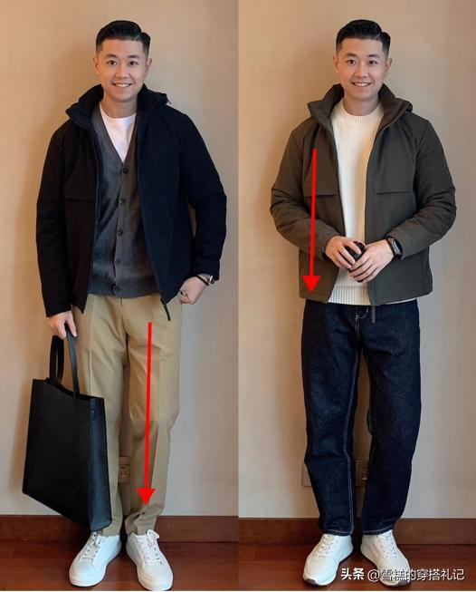 (3)男人在穿搭中,注意整體版型塑造:上直下直版型
