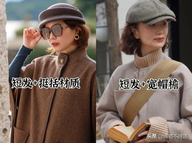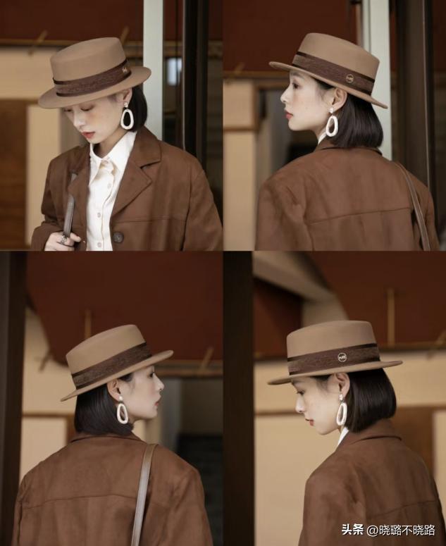 真正會戴帽子的女人都會格外的注意帽型,儘量遠離那種貼頭皮的針織帽、棒球帽,額頭的位置微微蓬鬆一些,反而顯得整個人更加的幹練利落,帽檐儘量不要選擇太靠後的,容易暴露出五官的缺點,對長相與臉型沒有任何修飾力。