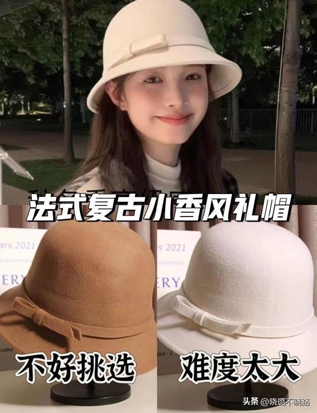 近兩年小香風元素非常的流行,但是具有小香風調的帽子並沒有大家想象的那麼時尚養眼,在挑選的時候一不小心就踩雷,帶起來不倫不類的,而且有些粗糙的毛呢材質,不僅容易粘毛粘灰,戴久了還容易走形起球,建議五六十歲的精緻女人最好避雷。