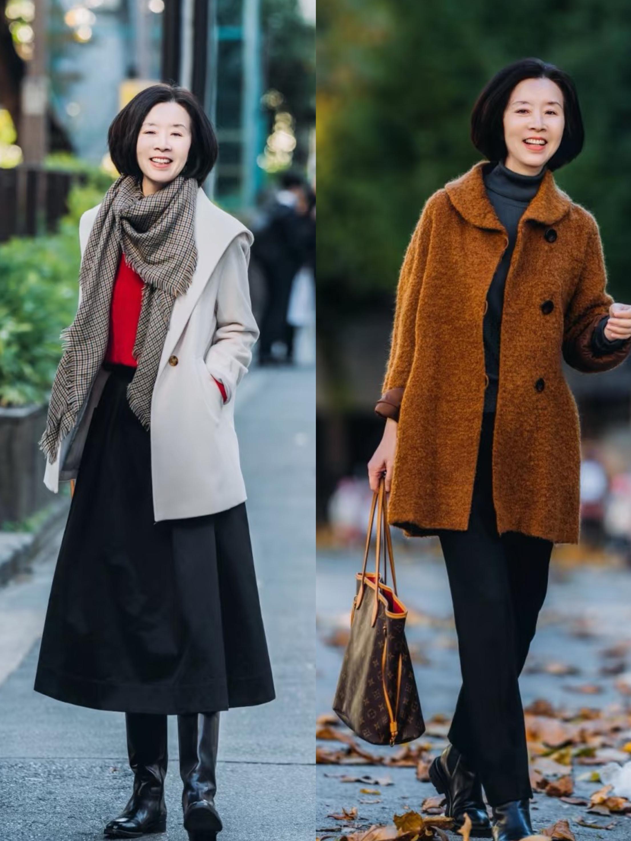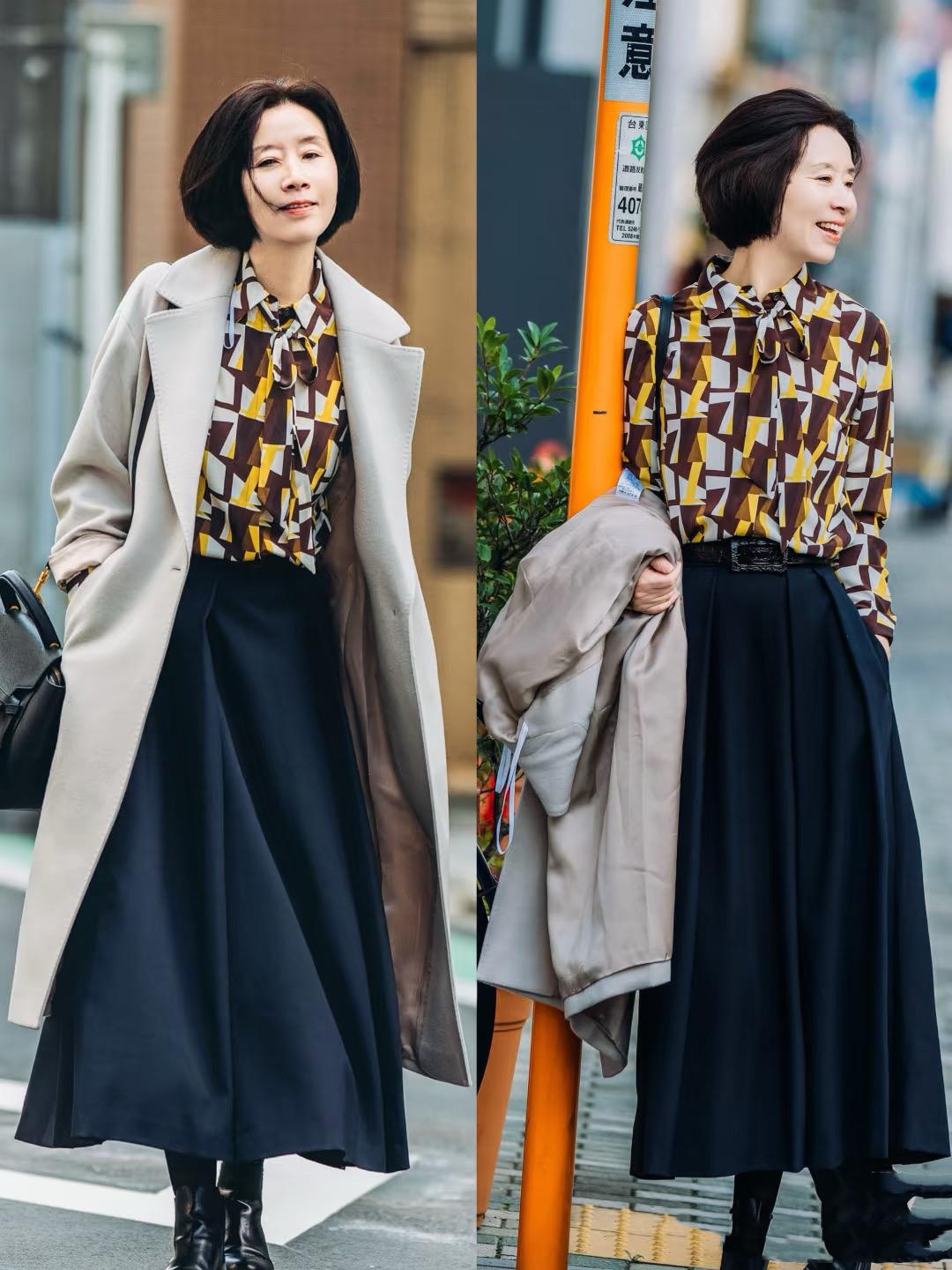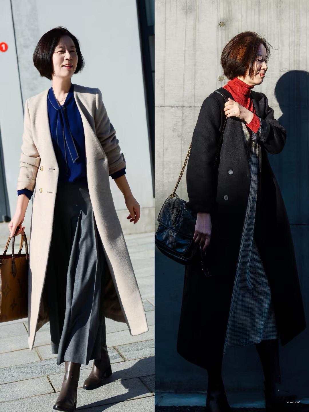 其實在50+阿姨的穿搭裏,長款大衣還是比較少見的,因爲長款大衣很容易壓個子,所以選擇的時候需要更慎重。