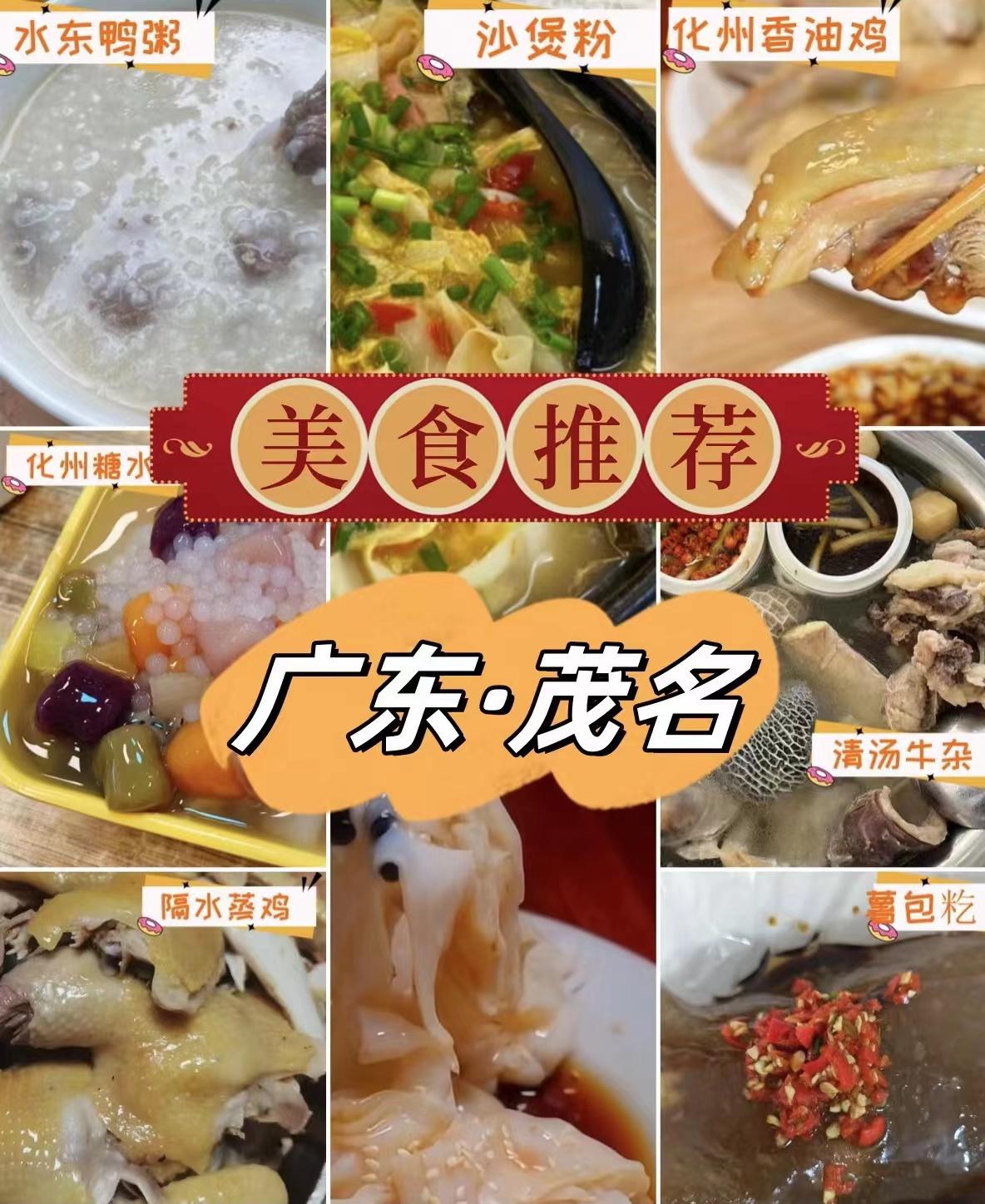 水東鴨粥、化州香油雞、化州糖水、簸箕炊、食慣嘴粉皮、牛腩粉、茂名糯米炊、花椒魚、沙煲粉、薯包炊、電白清煮花蟹。