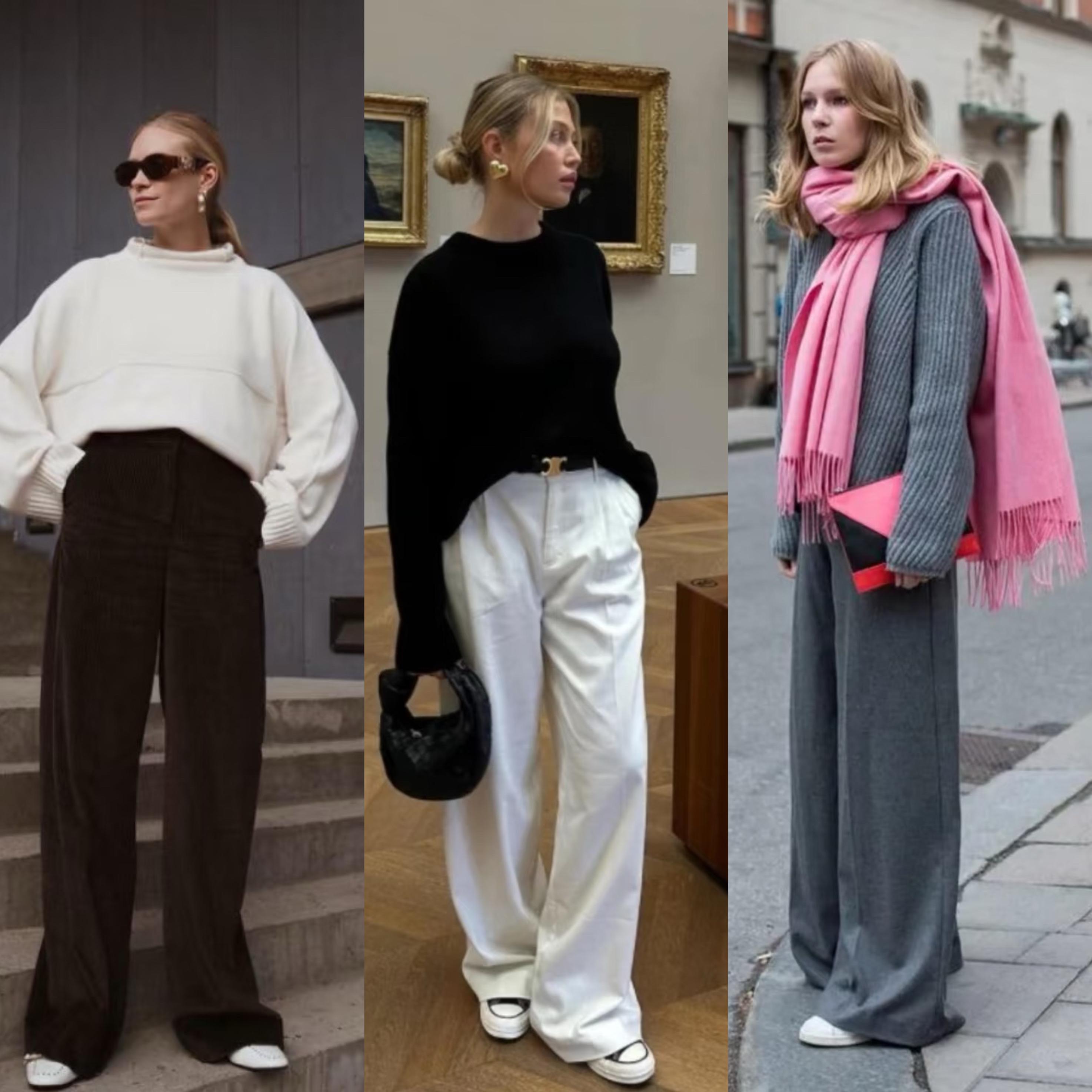 冬天最愛的闊腿褲,與這“4件”上衣更配,酷颯遮肉、顯腿長