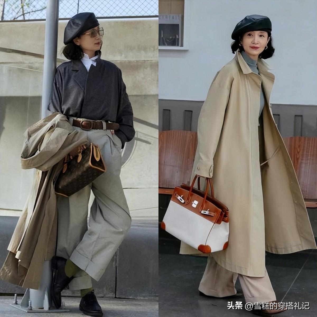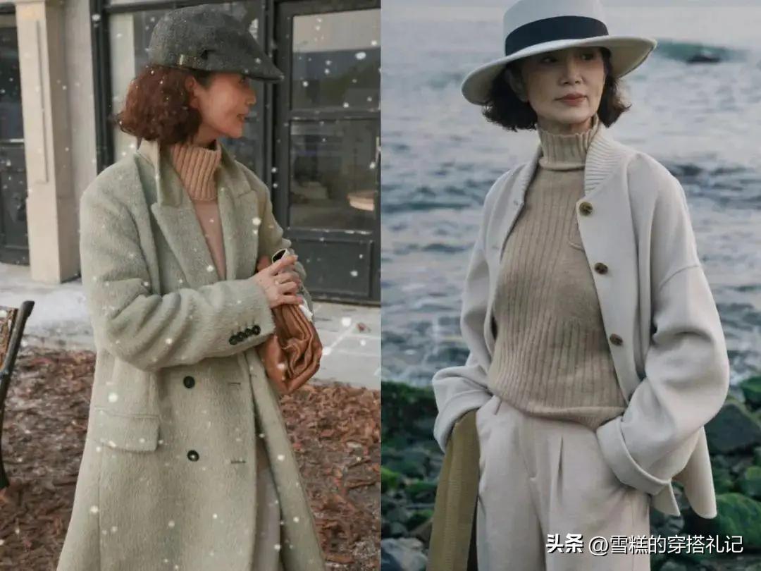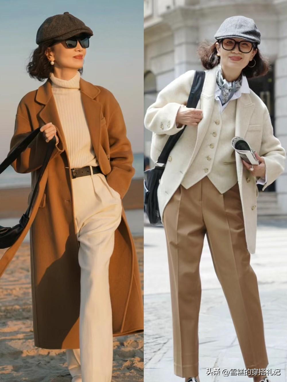 這兩套三木媽媽的搭配都顯的更沉穩和大氣,並且色系都是相對簡單和統一,遠遠看去就是強氣場女神一枚。前套的帽子和大衣顏色一致,穿在身上打造精幹感,光看上半身就有一種強氣場的壓迫感了;後面一套的帽子、外套和褲子的色系都是統一的,即使中間有其他色的毛衣間隔,也顯得層次有序,不過整體依舊顯得很整潔明朗。