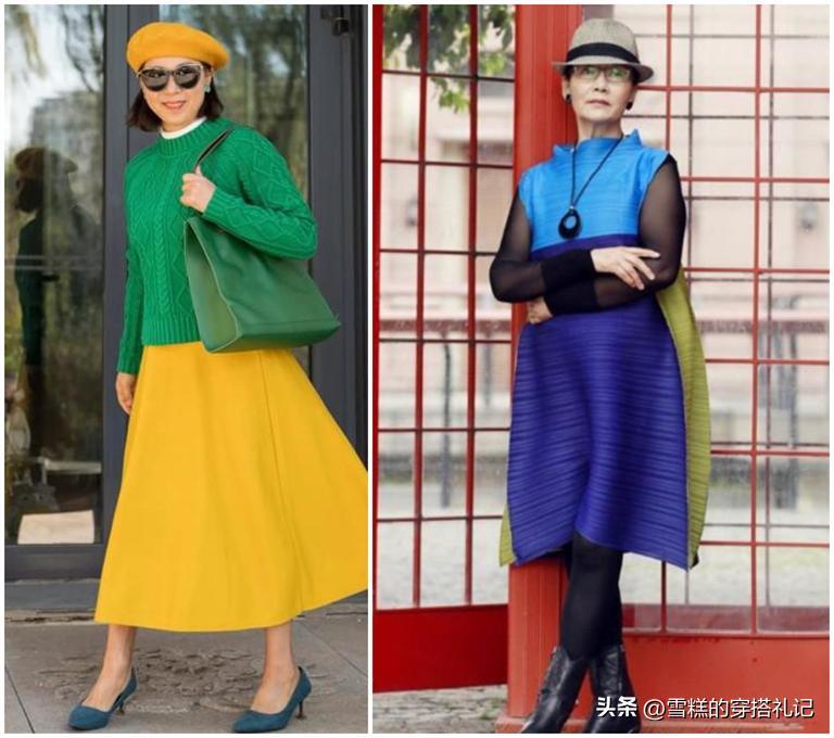 豔麗的彩色總是會莫名生出一股土氣來,這些顏色需要和年輕的小姐姐們掛鉤,因爲膠原蛋白和飽滿的精神狀態就可以將這些色彩撐起來。反觀老年組,隨着褶皺的產生和氣色的暗沉,這些彩色反而成爲致命利器,一穿就顯土,而且更顯黑黃,因此必須第一時間要捨棄這些豔色。