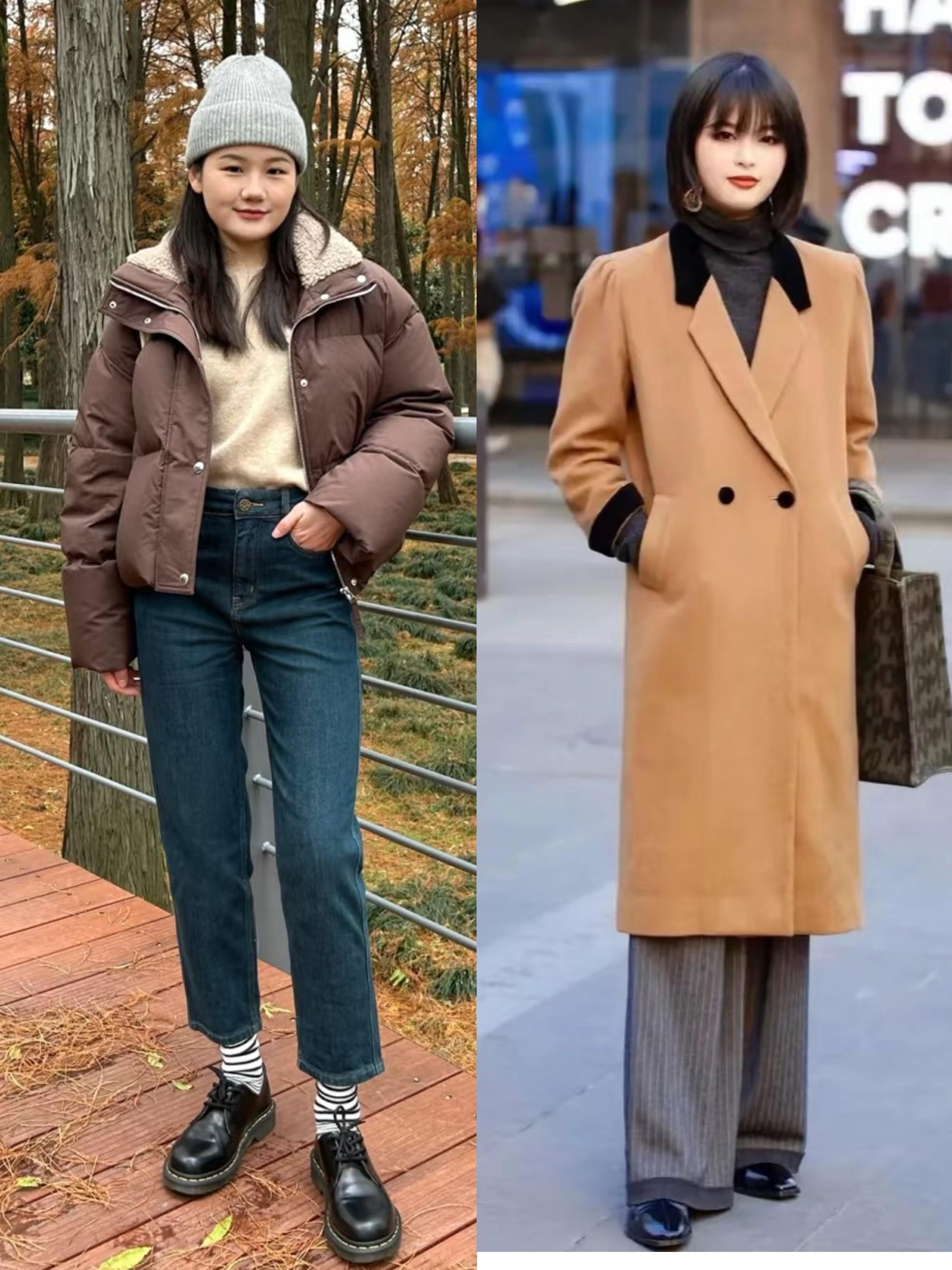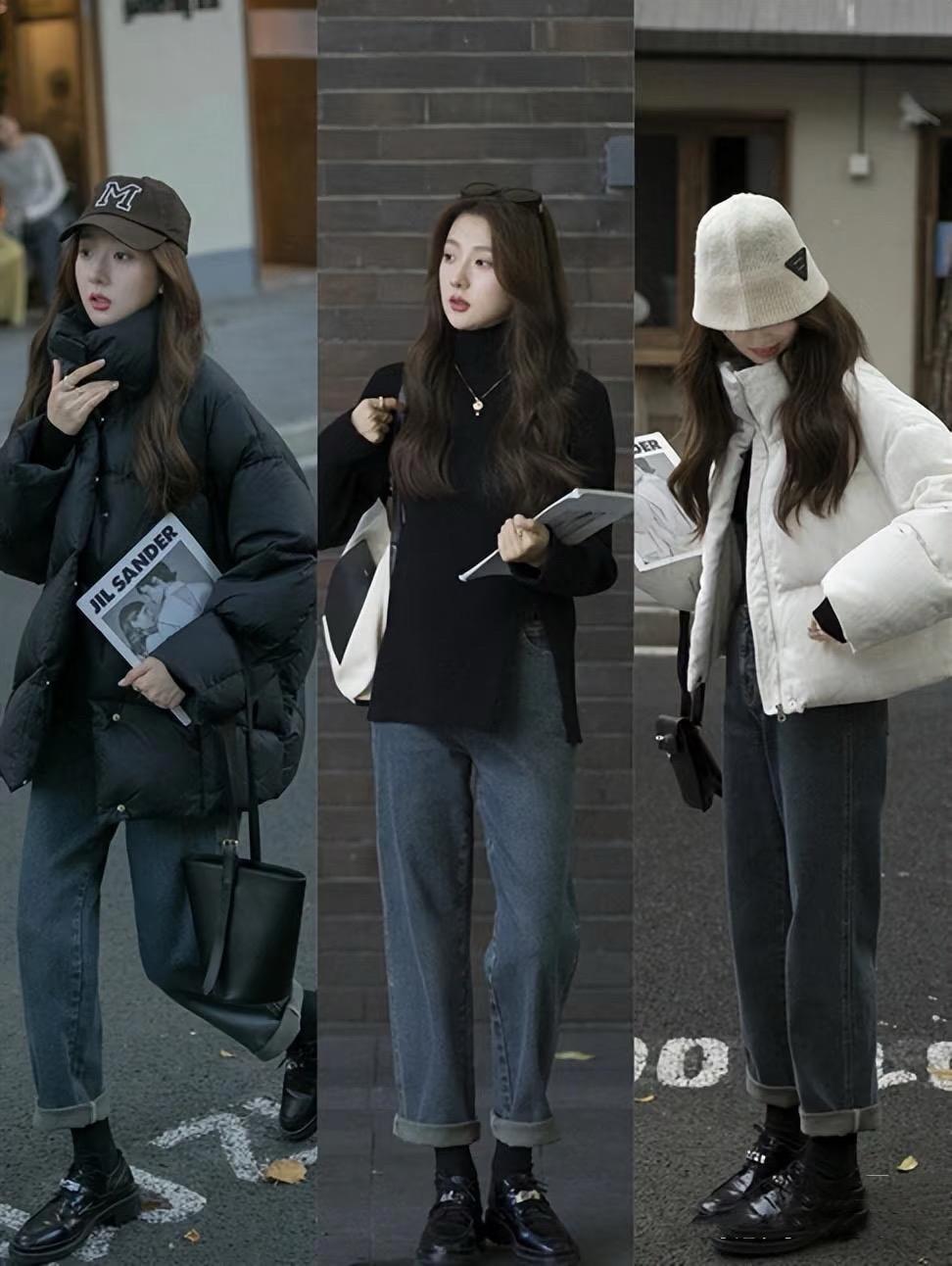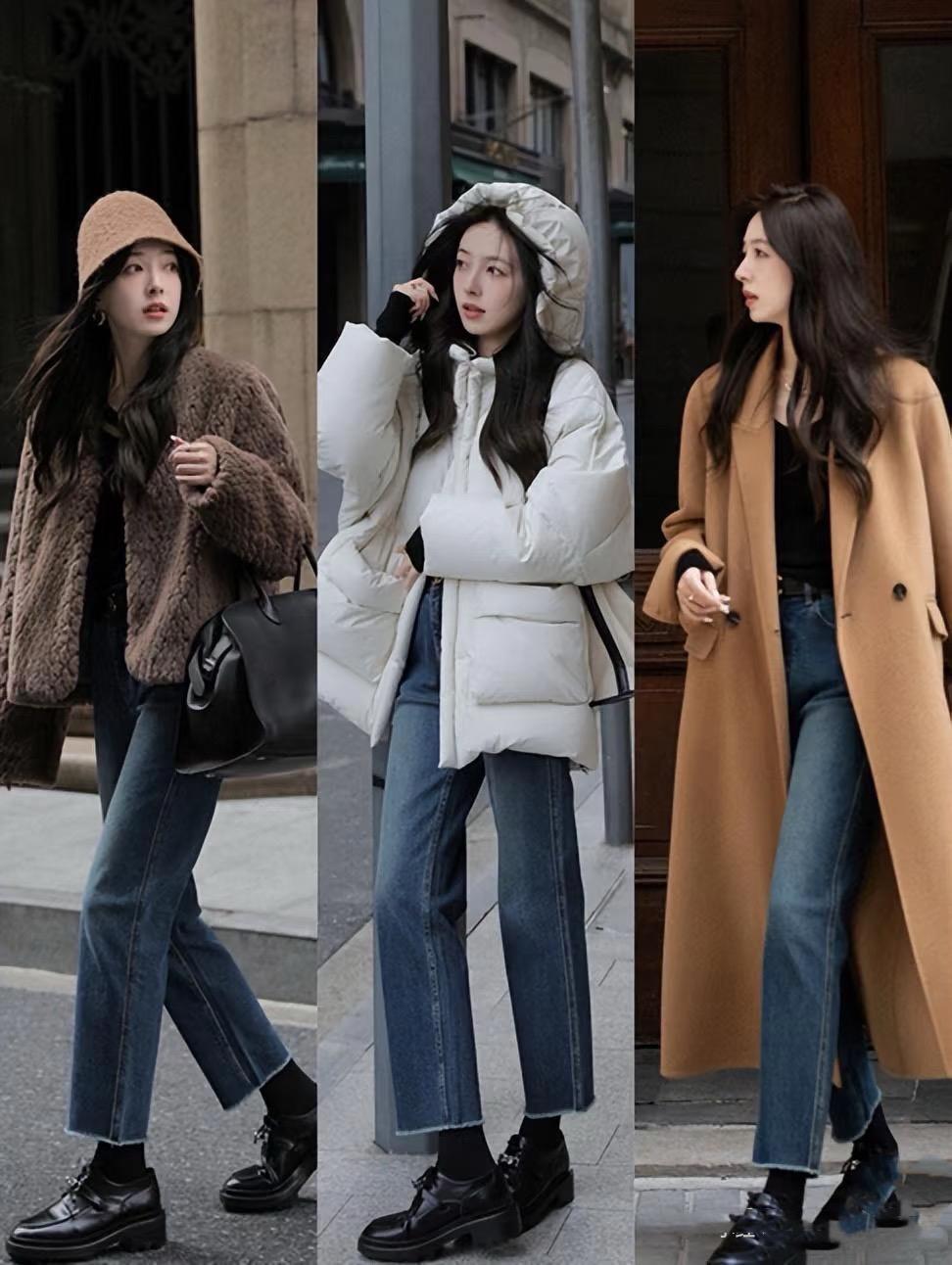 寬鬆度羽絨服、或者毛絨外套、以及長款大衣,都可以配直筒牛仔褲來穿,搭配厚底的樂福鞋、簡簡單單的很高級。