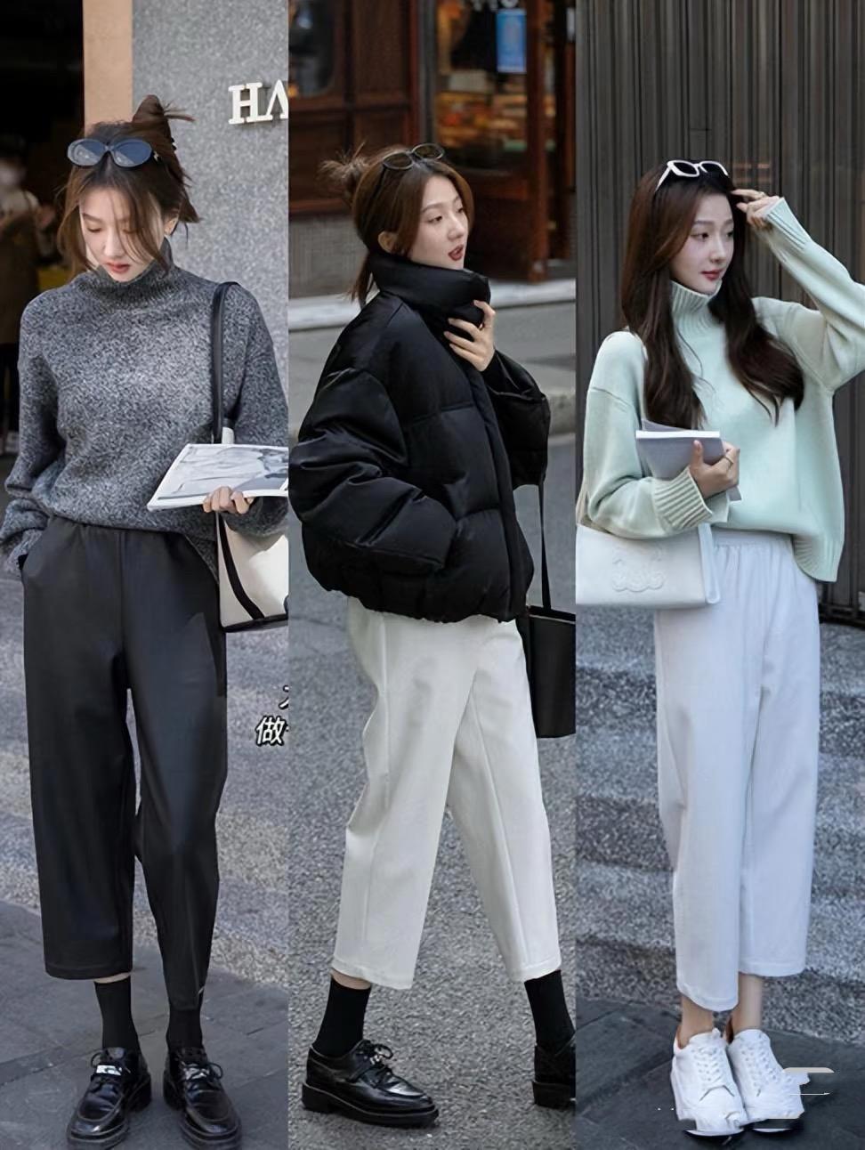 冬天裏的束腳褲,總是更加利落一些。小個子女生擔心穿衣顯邋遢,可以多穿着束腳褲,不僅修飾腿型,也保暖遮肉。