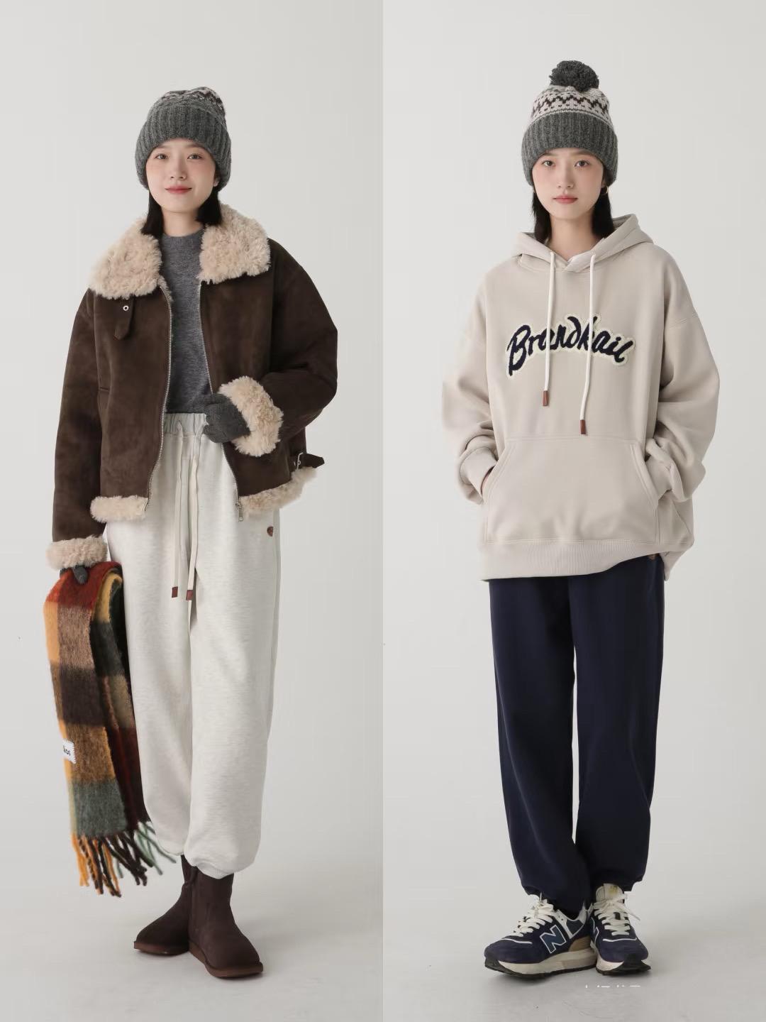 束腳褲是一種運動褲的版型,更加適合日常休閒來穿着。我們選擇束腳褲的時候,可以搭配更厚實的加絨款,保暖又防風。