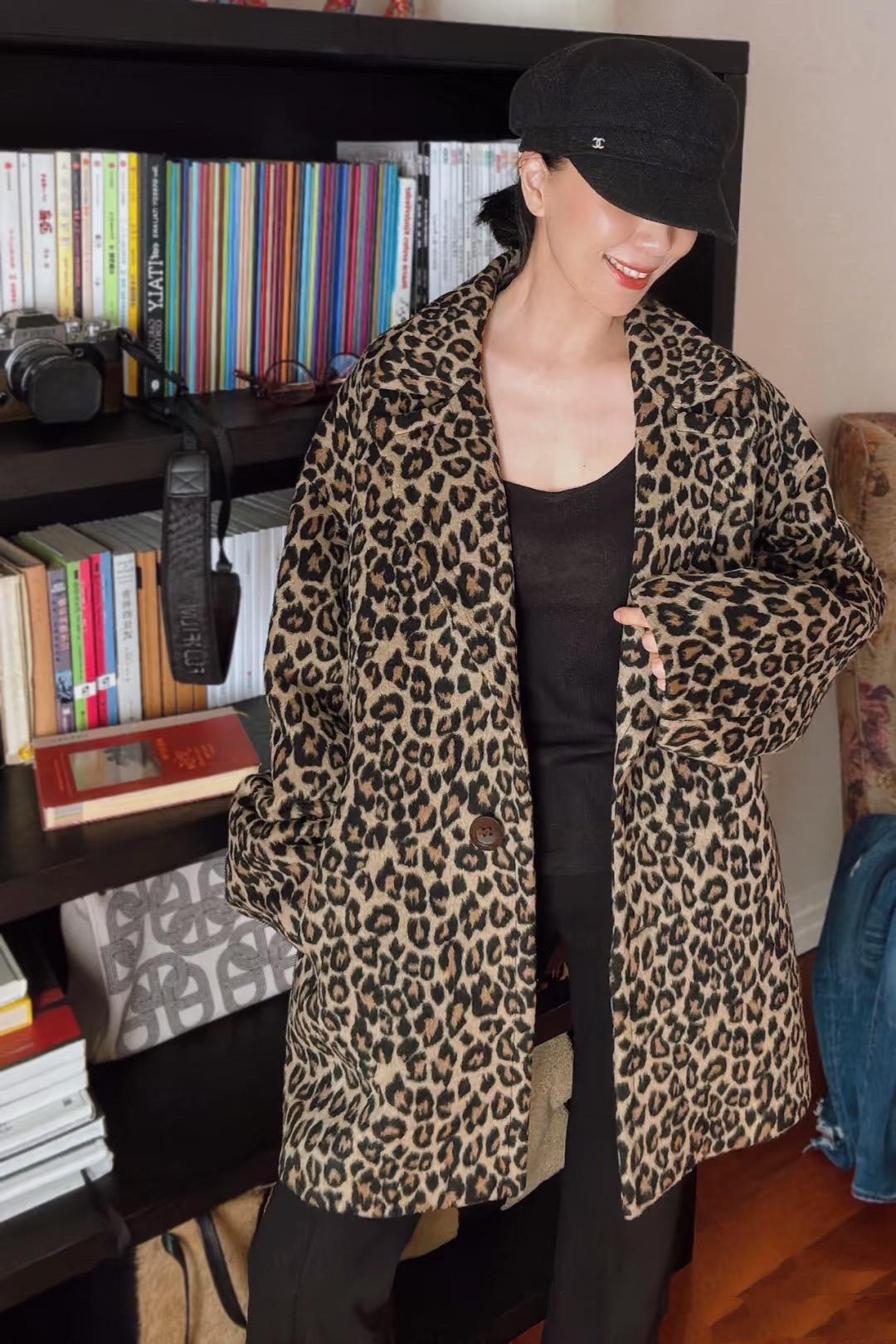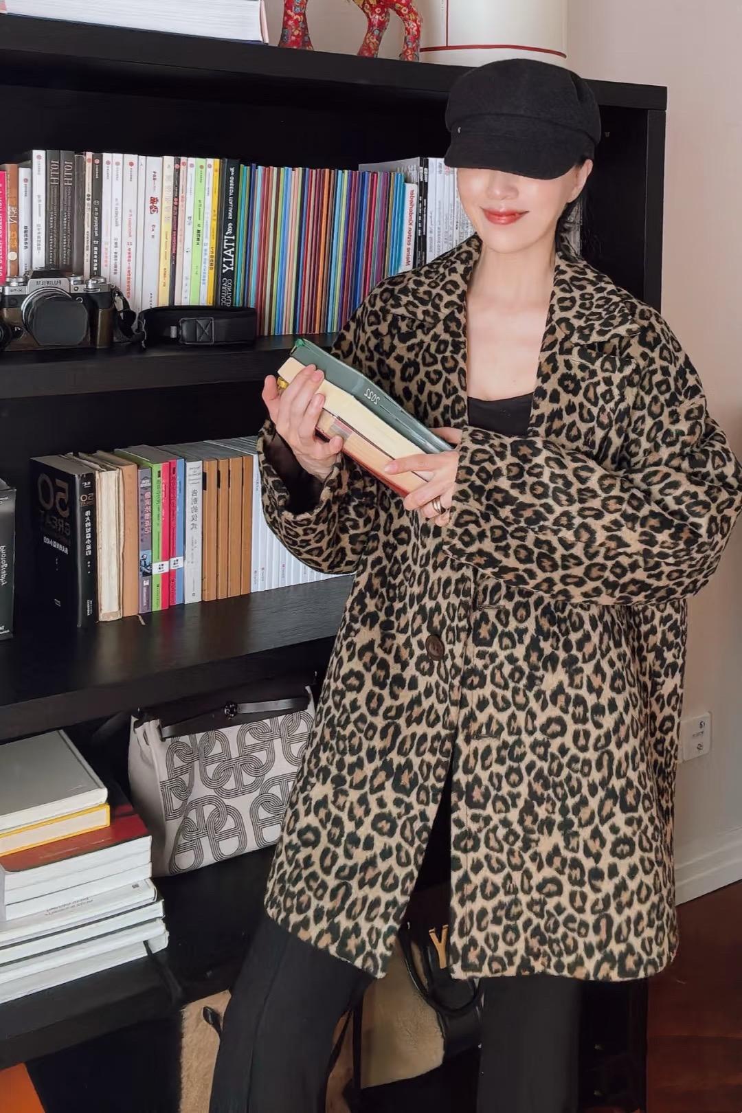 如果後背有一點粗獷、或者身體偏胖,這種挺括且寬鬆的豹紋大衣,都能更自然的包裹身形的不足。