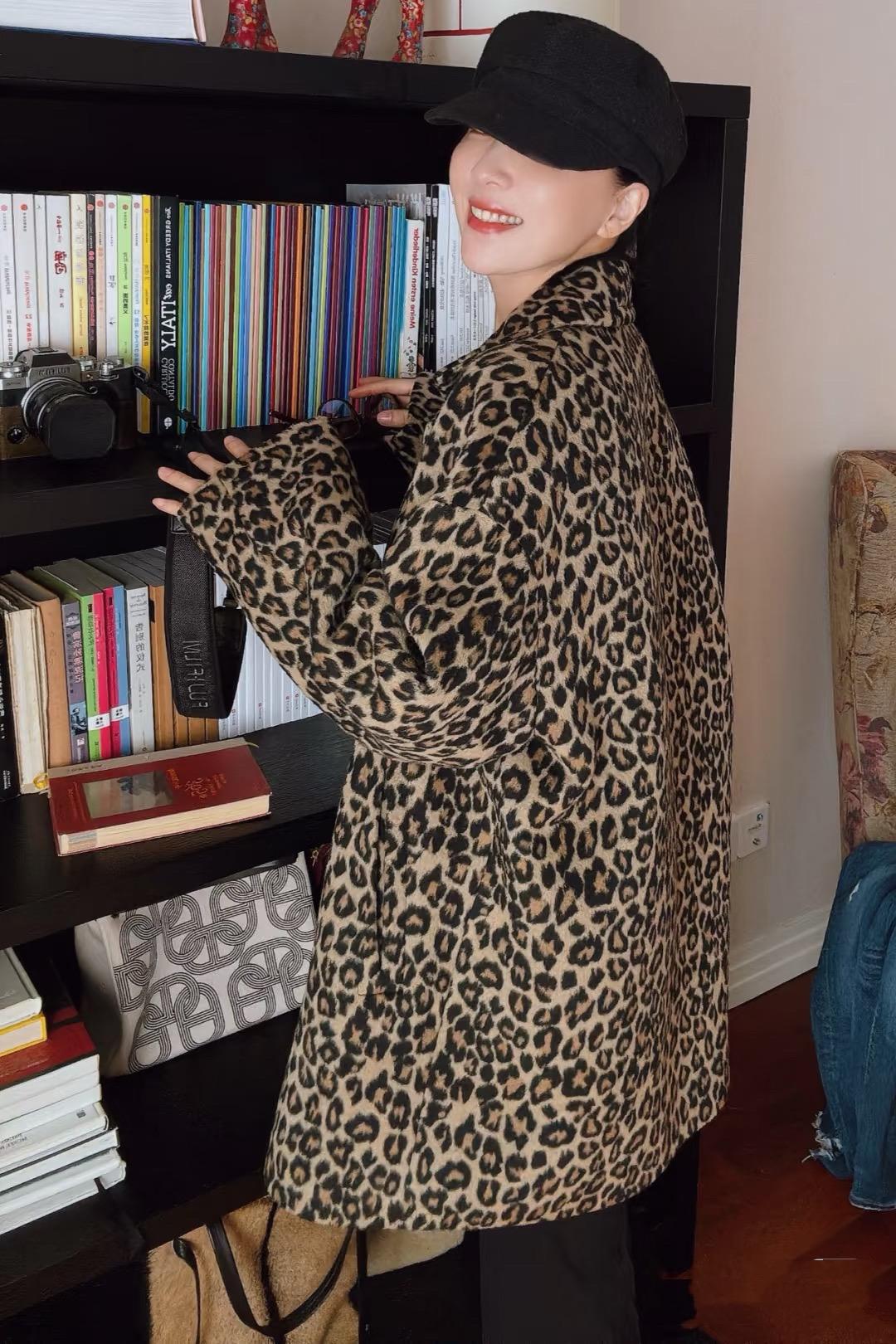 豹紋大衣,整體是一種寬鬆的版型,對於我們的身體也有一定的包容性。