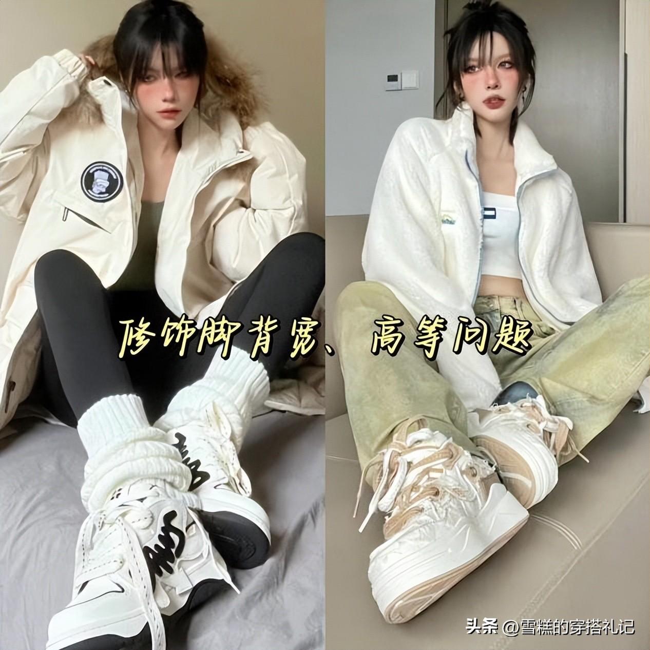 希望整體更加輕盈一些的年輕女性,建議可以多試試這種稍微寬鬆一些的淺色麪包鞋,米色、杏色、白色等等,可以使得造型更加出彩,關鍵還可以增加高級感。而且鞋子的顏色越淺,整體的造型越輕盈,可以避免冬天的厚重感與沉悶感。