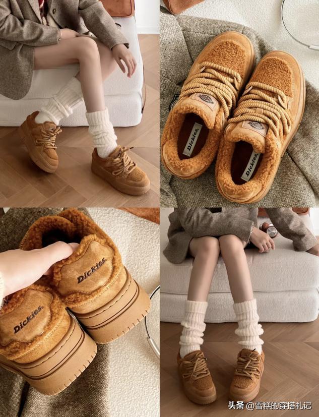 冬季喜歡穿毛絨質感的毛衣與皮草羊毛大衣的女性,在挑選麪包鞋的時候可以多從絨面出發,能夠使得麪包鞋的材質與服裝的材質相互吻合,使得整體搭配更加的和諧自然,關鍵還能夠利用材質之間的呼應增加整體的辨識度。