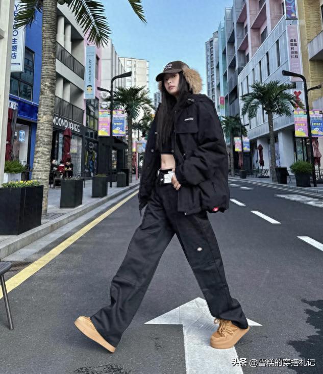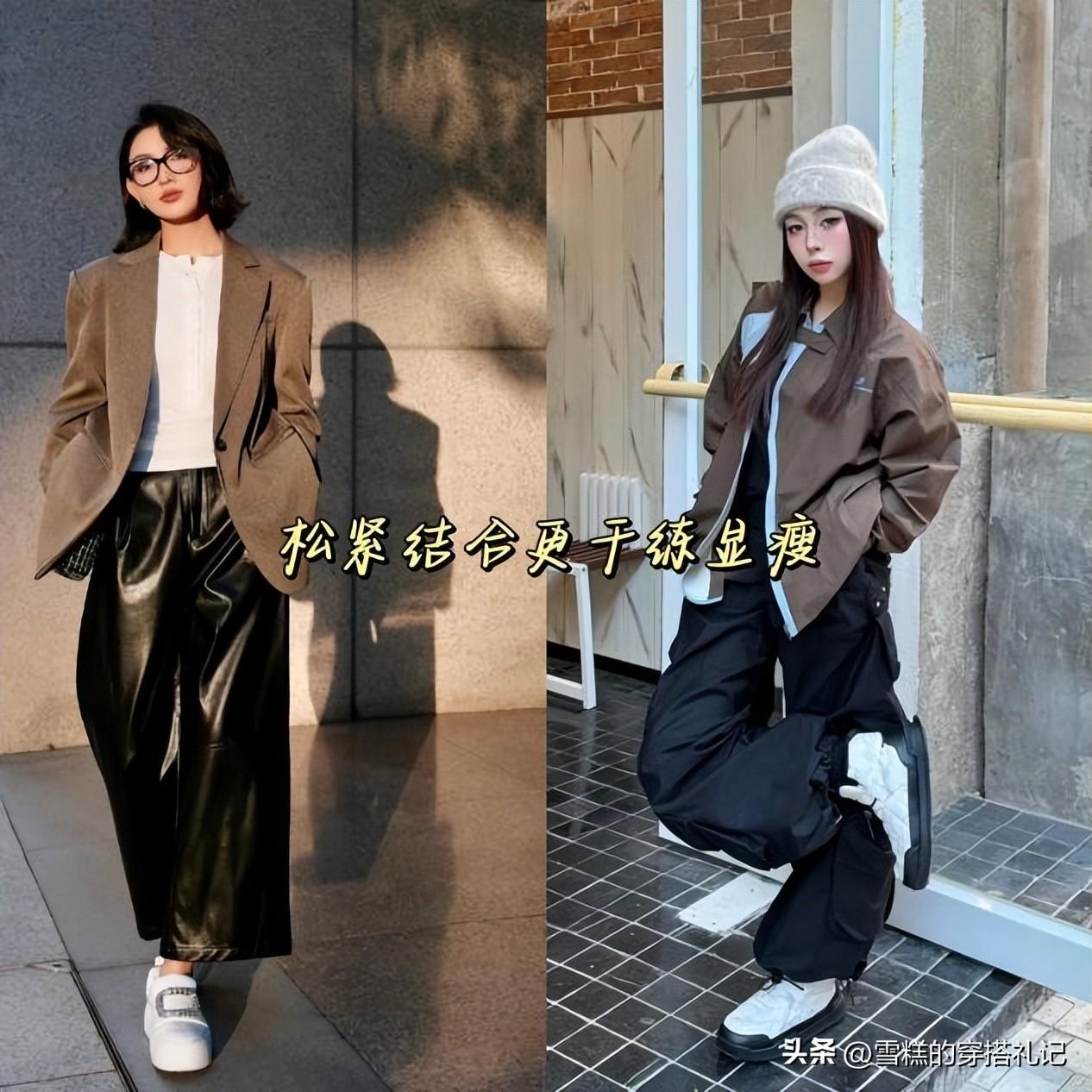 在整體的搭配中,也需要多關注下版型的協調。如果對自己的腿型很滿意,那麼可以選擇修身一些的鯊魚褲,勾勒出纖細的線條感,搭配上軟乎乎的麪包鞋,上窄下寬的配合格外的顯瘦顯高。需要注意,內搭和外套也儘量選擇寬鬆的樣式,比如大版型的棉服、羽絨服、毛衣等等,隱藏肉肉同時增加對比感,讓整體的氣質顯著提升。