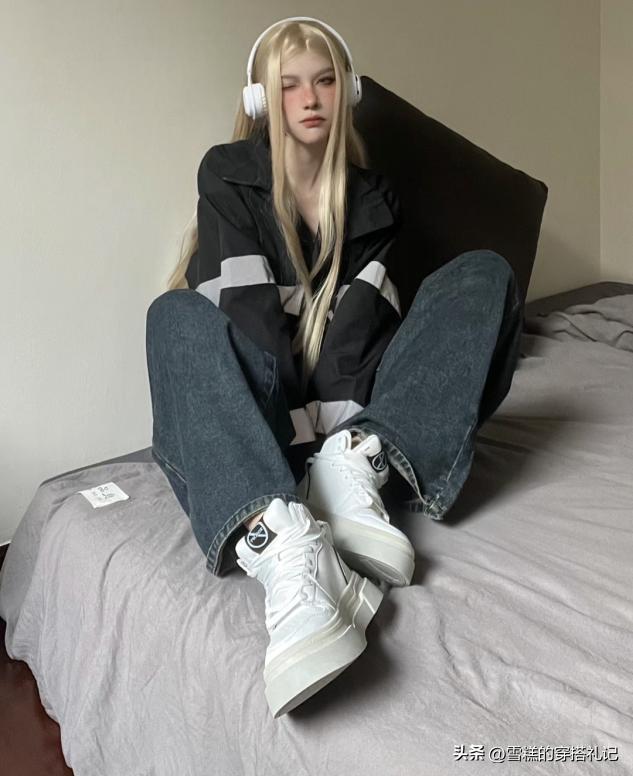 同樣屬於淺色調的鞋子,白色系的麪包鞋會更加百搭一些,配上墨藍色或者灰藍色的牛仔褲,可以使得整體的造型更加時尚靚麗,利用這種淺色調的搭配也有助於提升溫柔氣質。但是不建議大家選擇飽和度太高的天藍色或者寶藍色,上身格外的暗沉,顯得整個人格外的老氣橫秋。