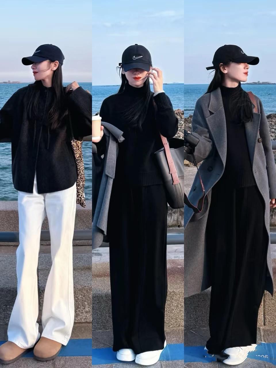 簡單不費力的穿搭,其實更多的以基礎款單品爲主。寬鬆外套、直筒褲、帽子都可以成爲增強時尚感的單品。