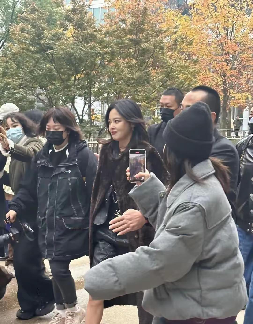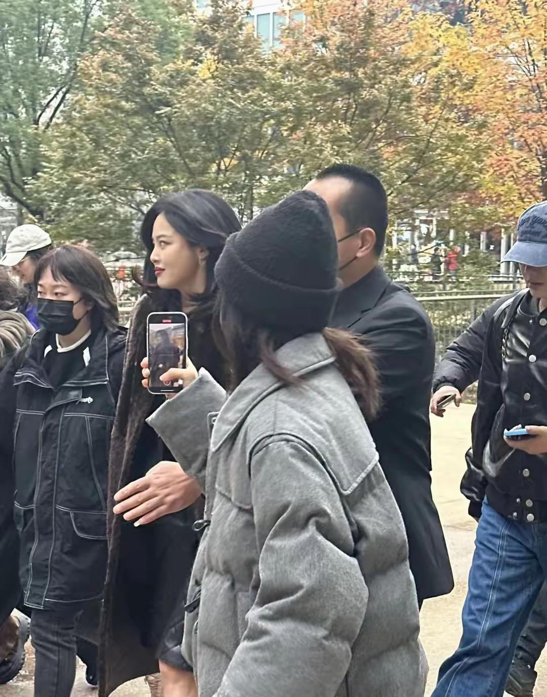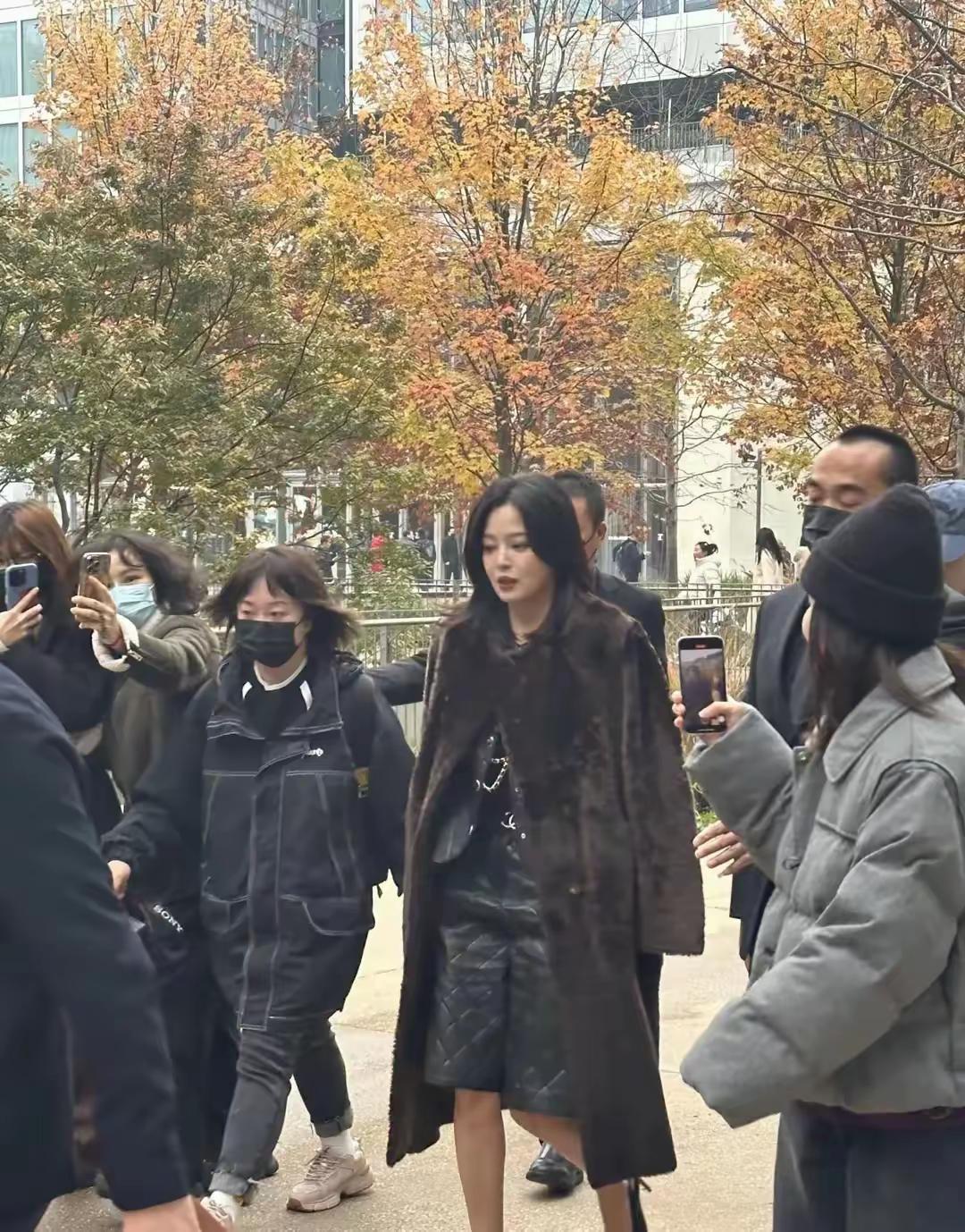 其實當辛芷蕾一出場,就被大衆圍觀,她在場外的時候,還穿了一件棕色的皮毛大衣,又貴氣有大方、真的太有氣場了。