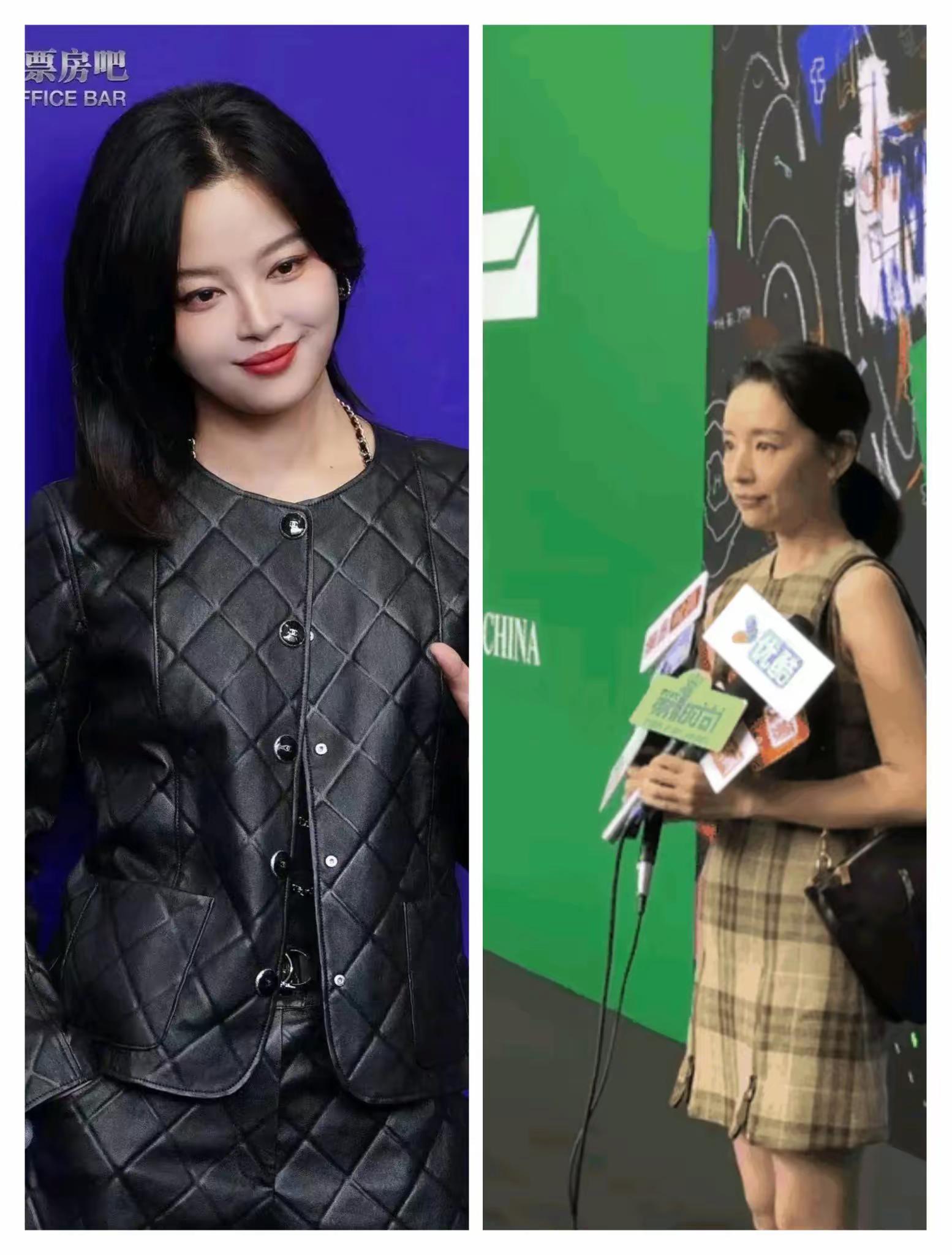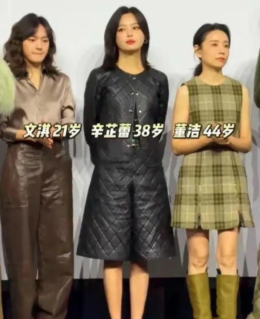 44歲董潔同框38歲辛芷蕾,一個穿短裙凍得僵硬、一個穿棉衣超自信