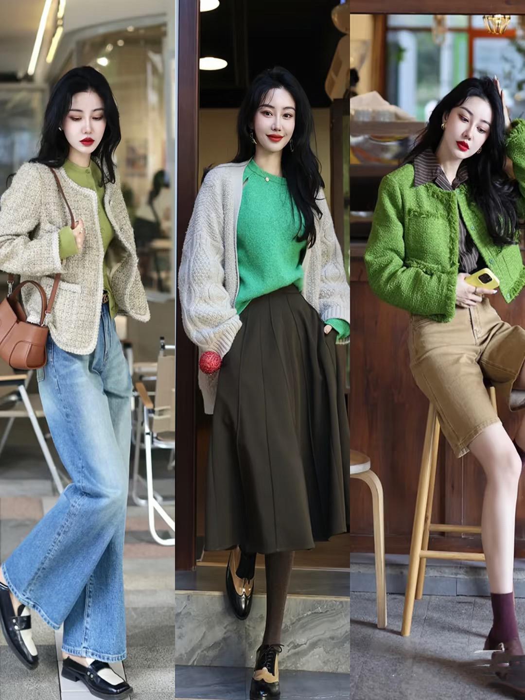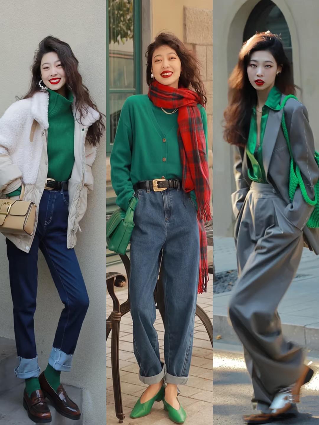 超級顯白的綠色毛衣,其實會更適合皮膚白皙、氣場強大的女生。如果你膚色白皙、顏值出衆,則更建議大家選擇這種明亮色的毛衣。