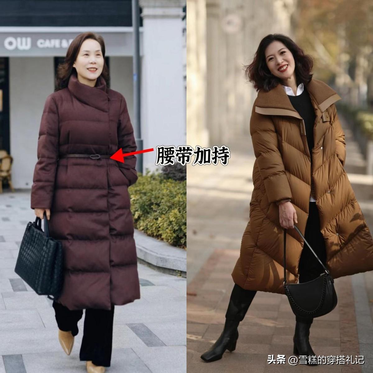 其實中年女人穿羽絨服,在挑選下裝的時候,只需要牢記“松而不垮、長而不拖沓”的法則既可,就好比長裙的挑選,長度要在膝蓋以下、腳踝以上的位置,配長款羽絨服延伸性更好。