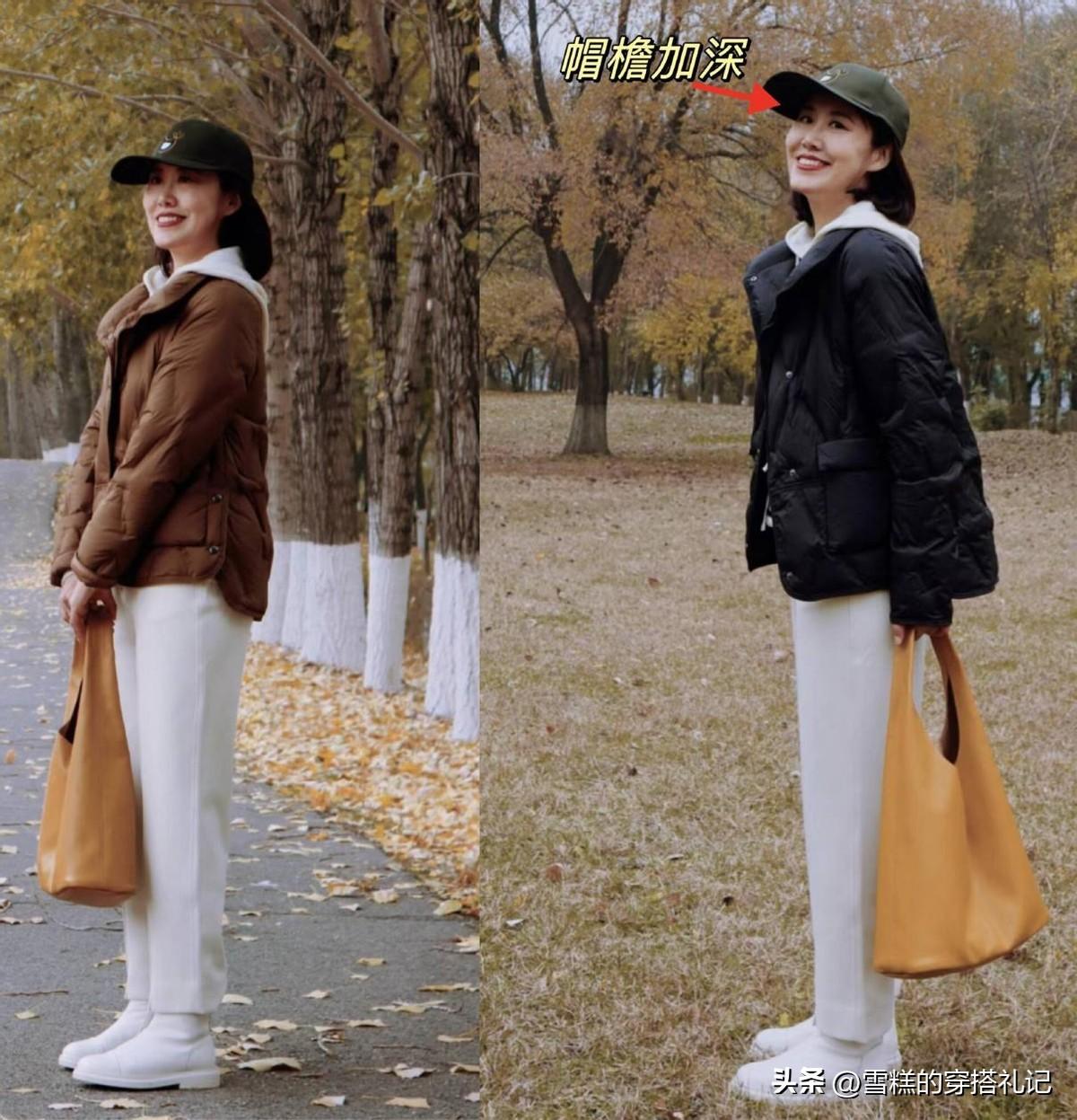 中年女人放任老態的體現:羽絨服配打底褲、戴老人帽,顯老沒氣質