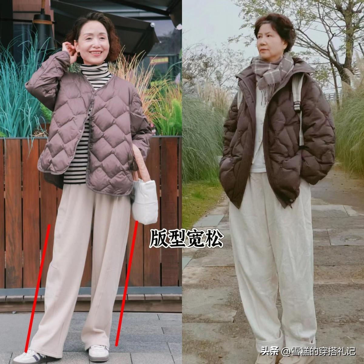 下裝一旦沒搭對,就連羽絨服都會受到牽連,儘管羽絨服的款式再時髦,搭打底褲也會土氣盡顯,所以選對合適的下裝,就成爲了中年女人的“必修課”。