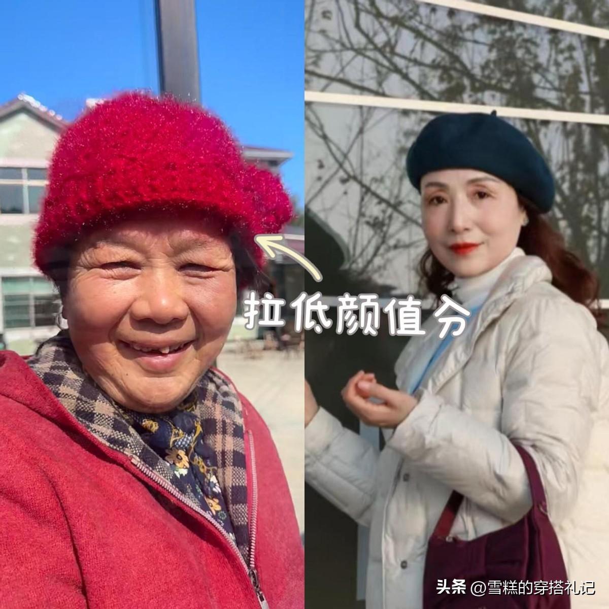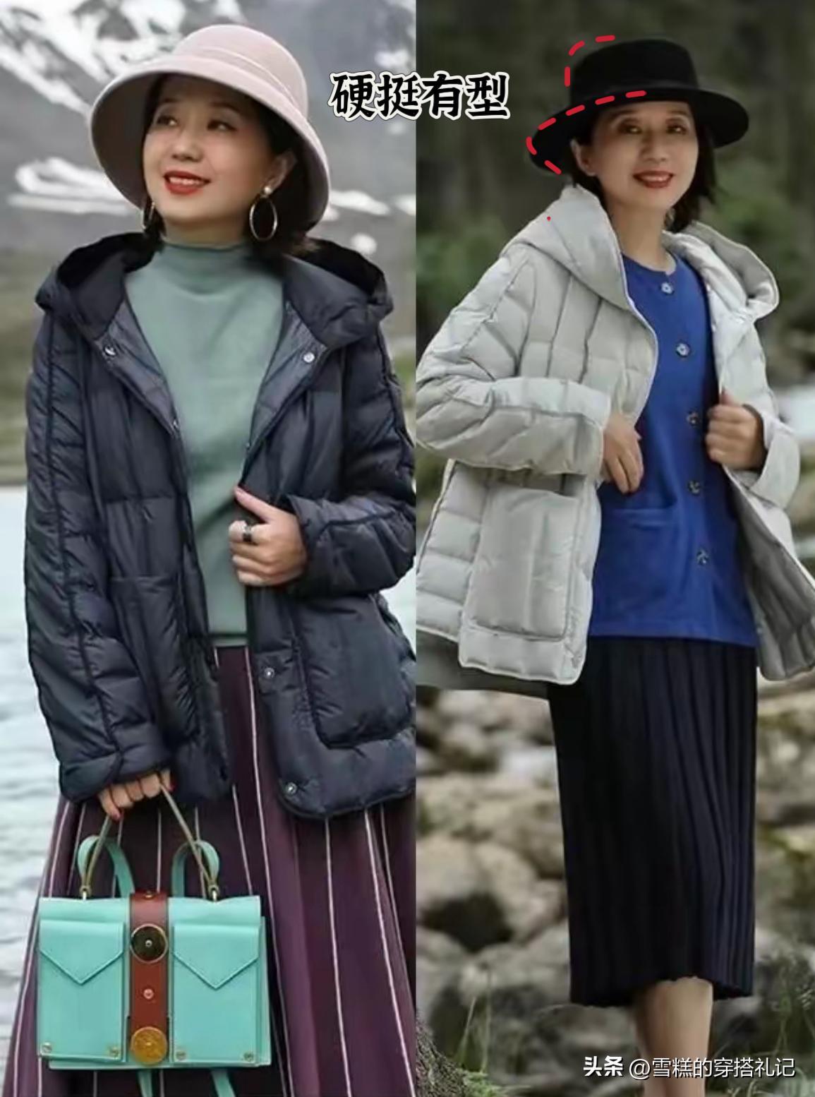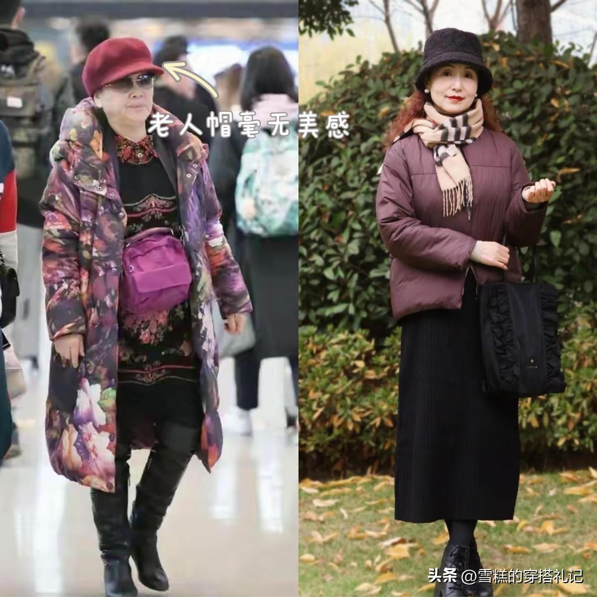 而且大多數的老人帽,都是採用針織材質,面料過於厚實容易顯臉大,所以中年女人搭配羽絨服的時候,不要再佩戴老人帽了,換成更時髦有型的帽子,才能提高你的顏值分。
