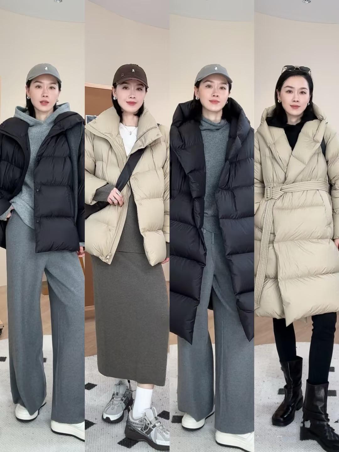 冬天羽絨服最保暖、也最容易穿出厚重邋遢感了。我們穿寬鬆的羽絨服,儘量去搭配一件基礎款的內搭。