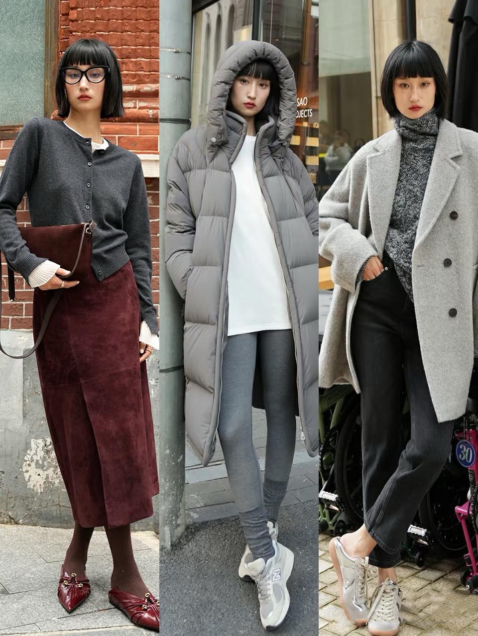 雖然冬天裏溫暖色很流行,但氣質清冷、少言寡語的女生,還是與灰色系的乾淨、冷冽更配。淺灰色的柔和、深灰色的冷靜,都讓人癡迷。
