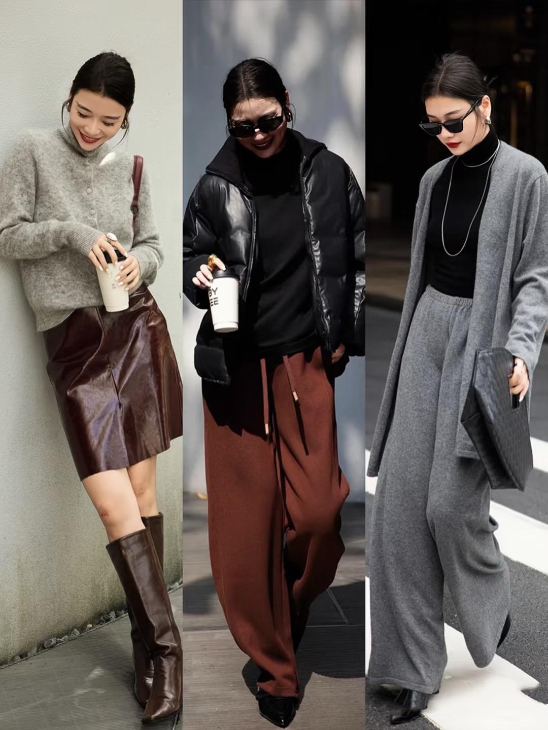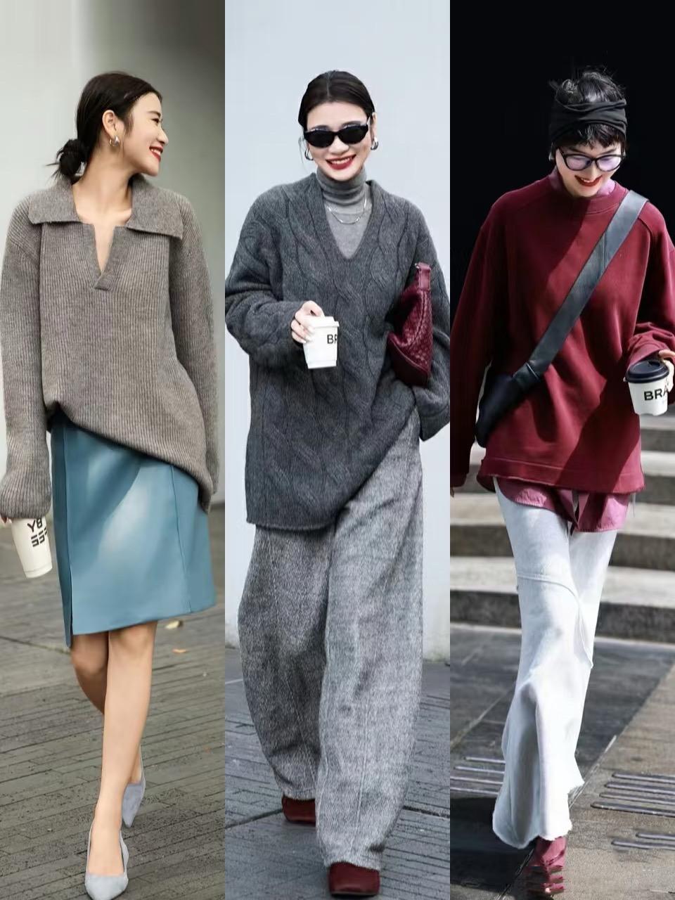 中灰色的服裝,也會更容易搭配。中灰色針織衫,可以配藍色闊腿褲,慵懶又大氣。中灰色的針織衫,既慵懶又高級,可塑性也非常強。