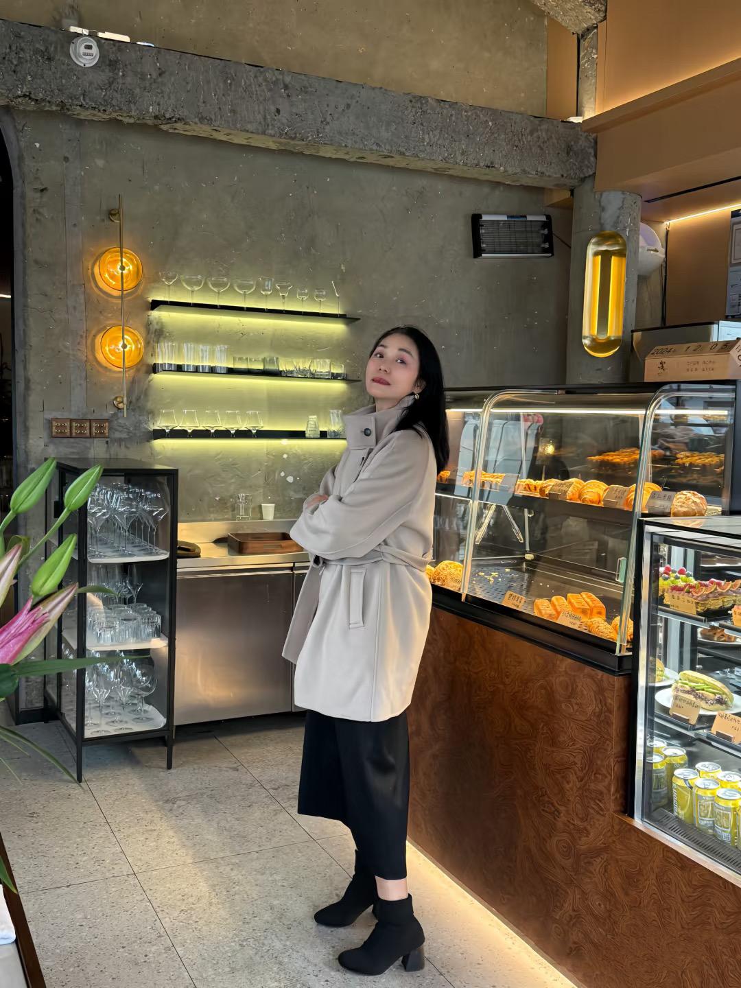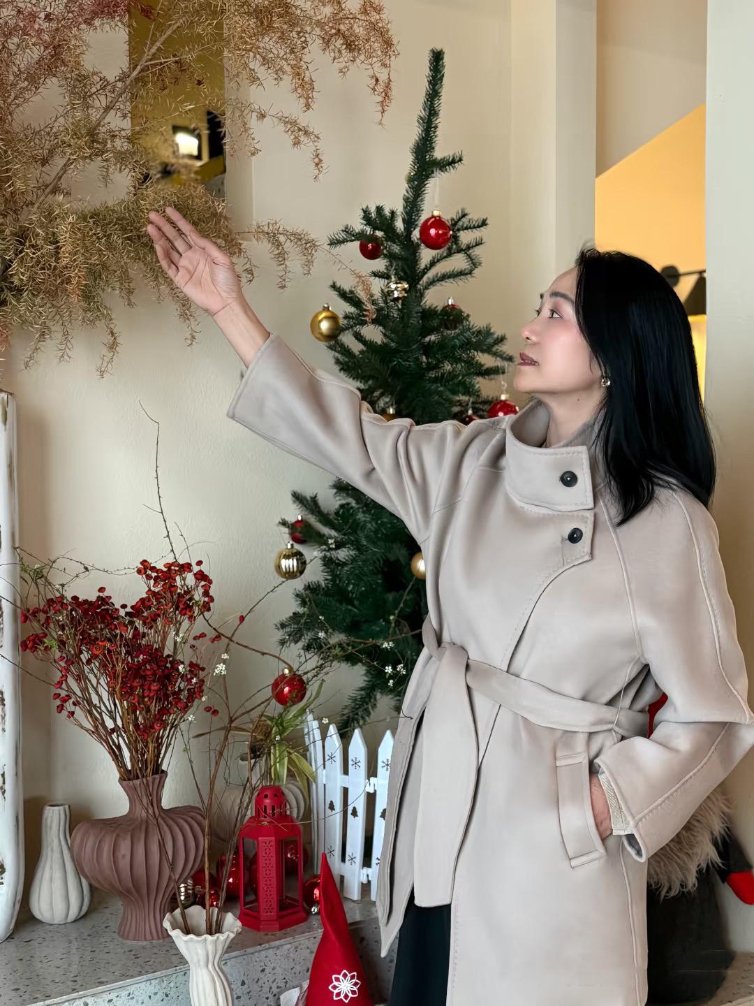 因爲是款式簡潔的大衣,所以帶一點設計感更洋氣。領口的剪裁、以及紐扣的裝飾,都讓這件大衣更有特點、也具備了辨識度。