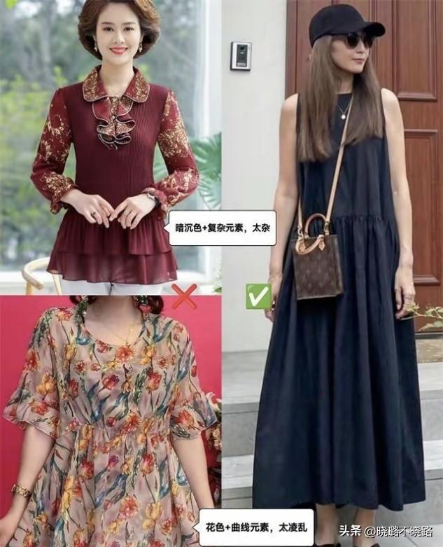 衣服不去選擇那些緊身的款式,首先就是有利於去規避那些身材偏胖部位的線條。特別是我們身材下半部分,特別容易堆積肉感,所以我們並不推薦中年女人去選擇穿搭包臀裙或者是瑜伽褲這一類單品,完全把你身材的肉全部暴露出來,穿衣的品味自然就降低了很多。