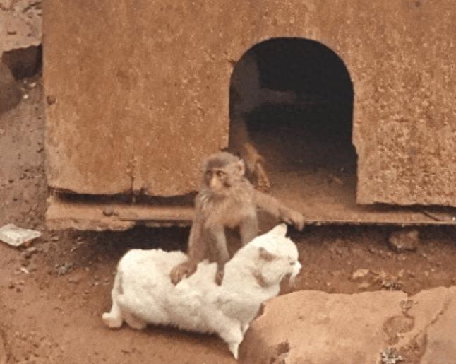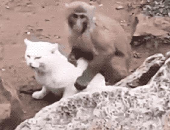 終於,這個畫面被好心人拍下來上傳到網上,終於讓更多網友看到,“猴子虐貓”也成爲了那一段時間的熱點。(對此事件,這裏不予討論,至少出發點是好的)