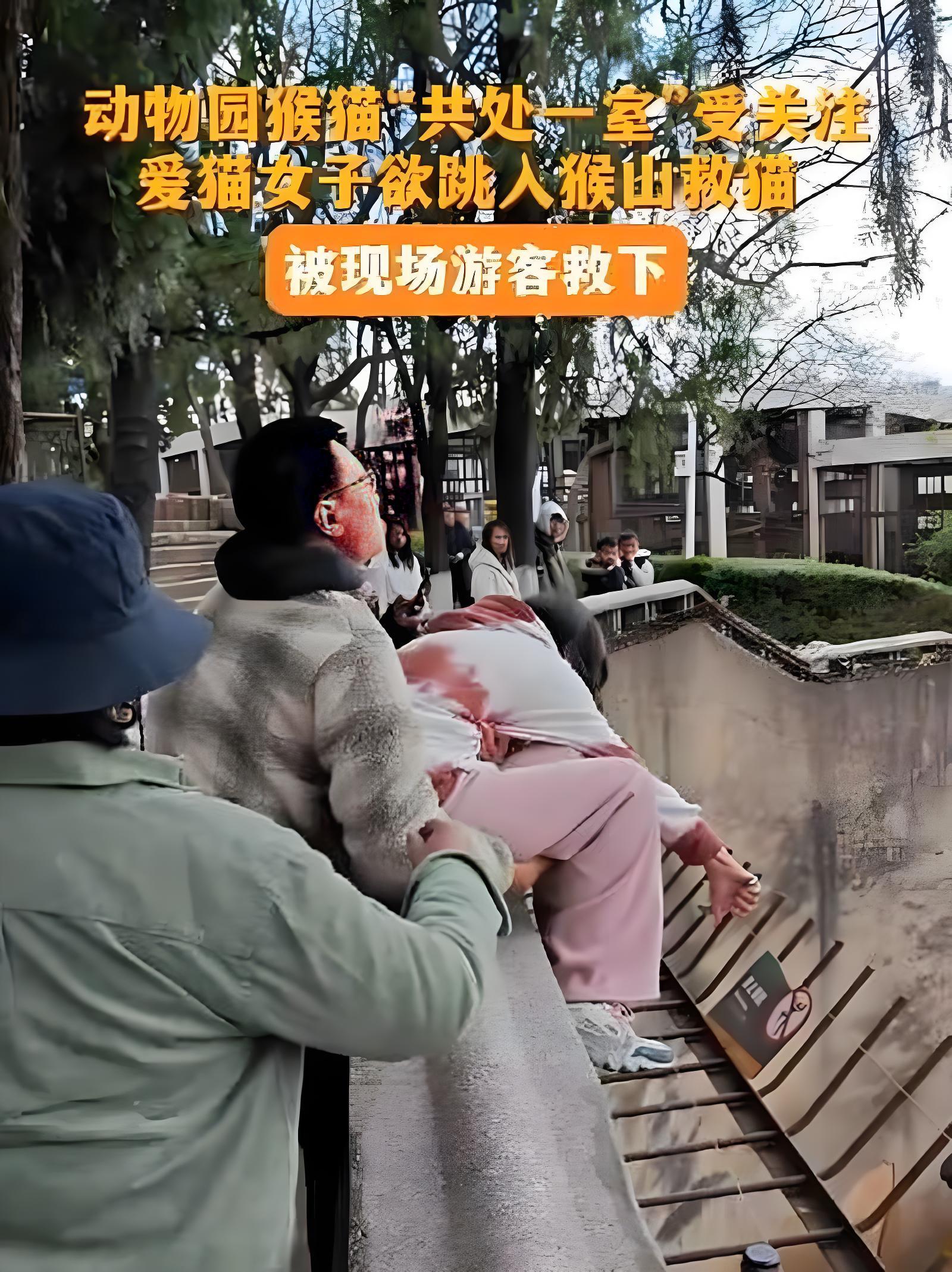直到一個遊客開始站出來,接着是第二個遊客,第三個遊客......越來越多遊客站出來反對,甚至有善良的人想要跳下去解救貓咪。